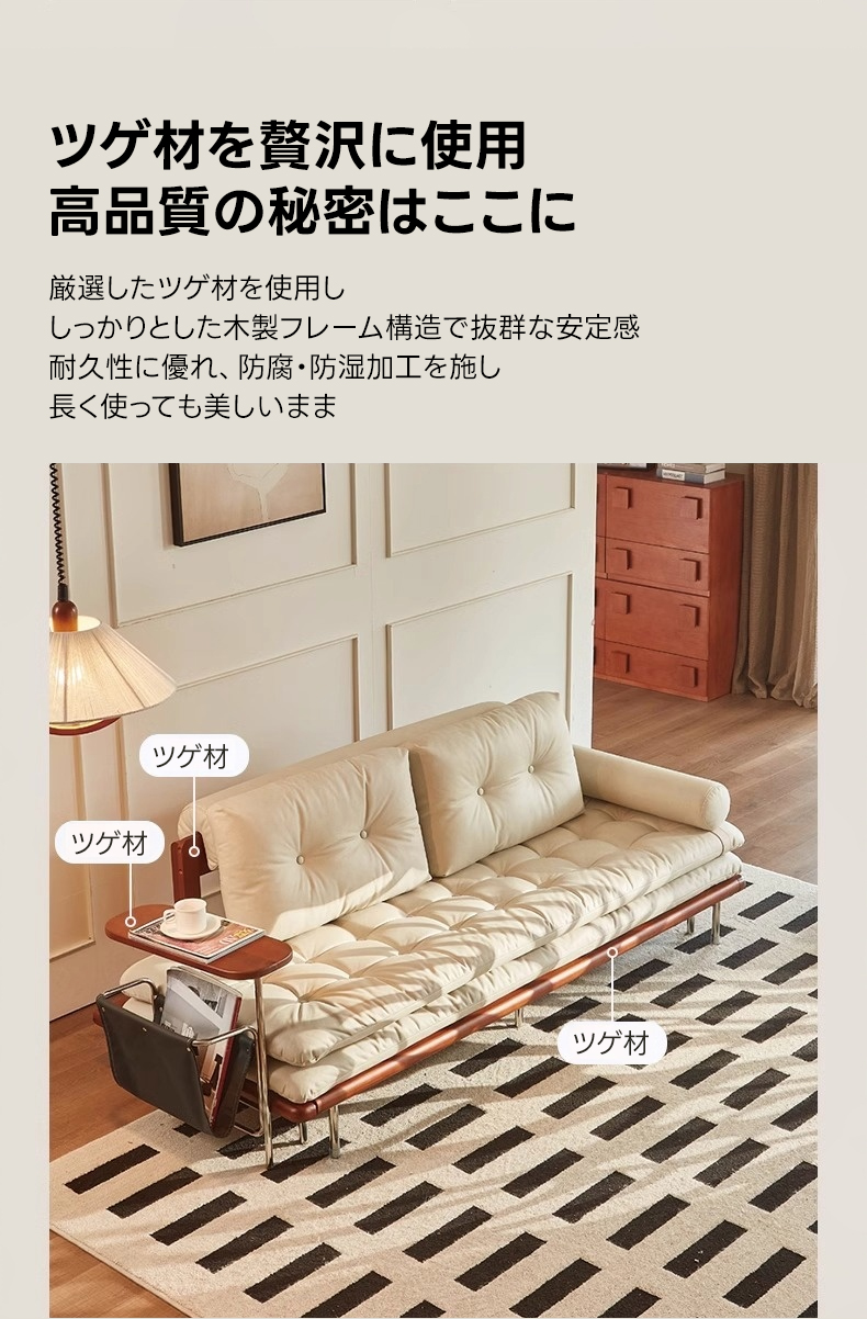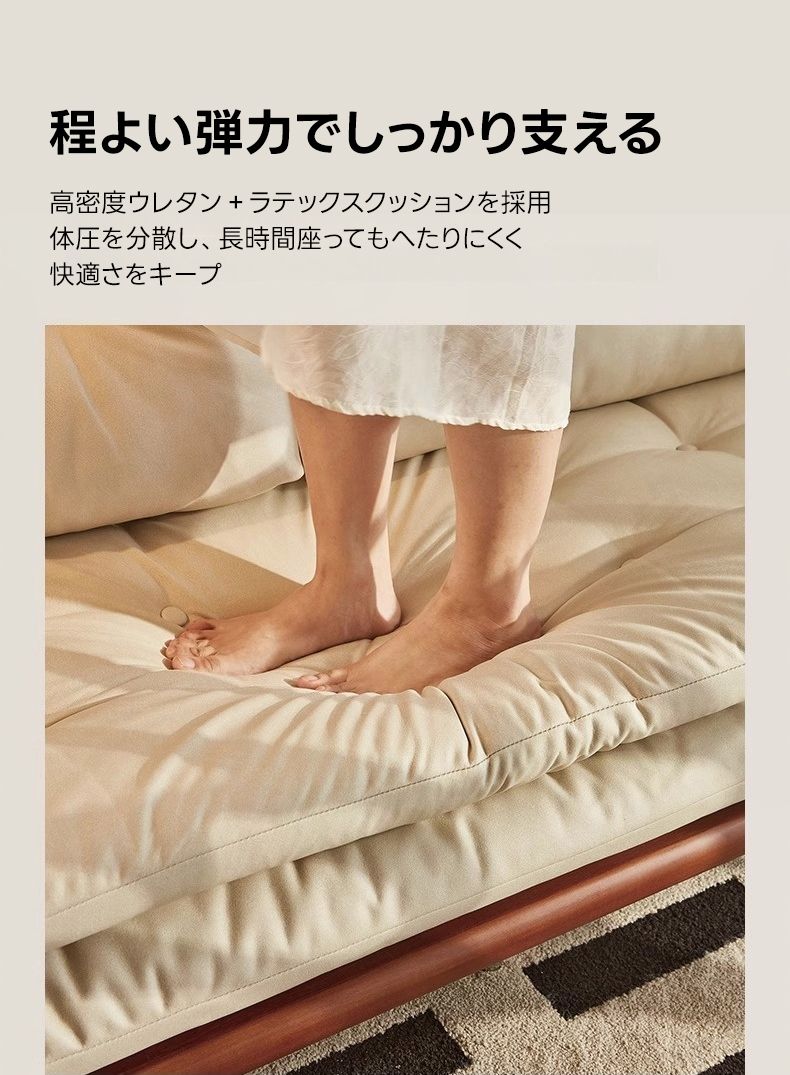- 【快適な座り心地】高密度ウレタンとラテックスクッションが体圧を分散し、長時間座ってもへたりにくく快適です。ツゲ材のフレームが上品で落ち着いた雰囲気を演出し、ヴィンテージ風の家具としても魅力的です。