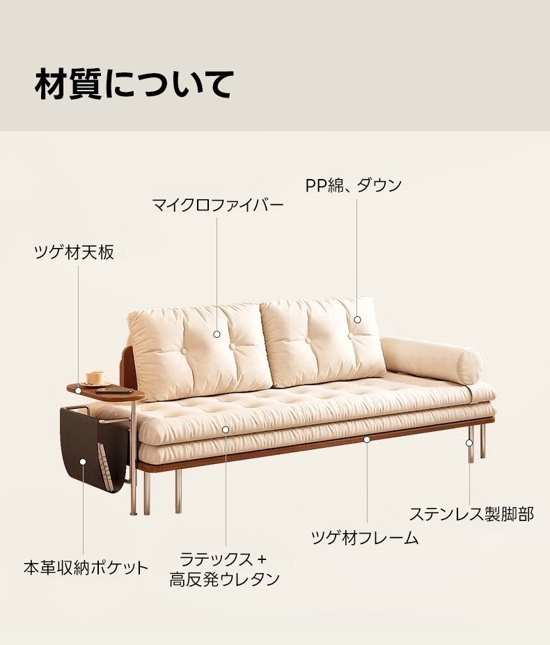 - 【高級素材で快適性アップ】マイクロファイバー、ダウン、PP綿、ラテックス、高反発ウレタンなどの高級素材を使用し、耐久性と快適性を実現。ステンレス製の脚部は耐食性、防錆性、抗酸化性に優れ、しっかりとした安定感を提供します。