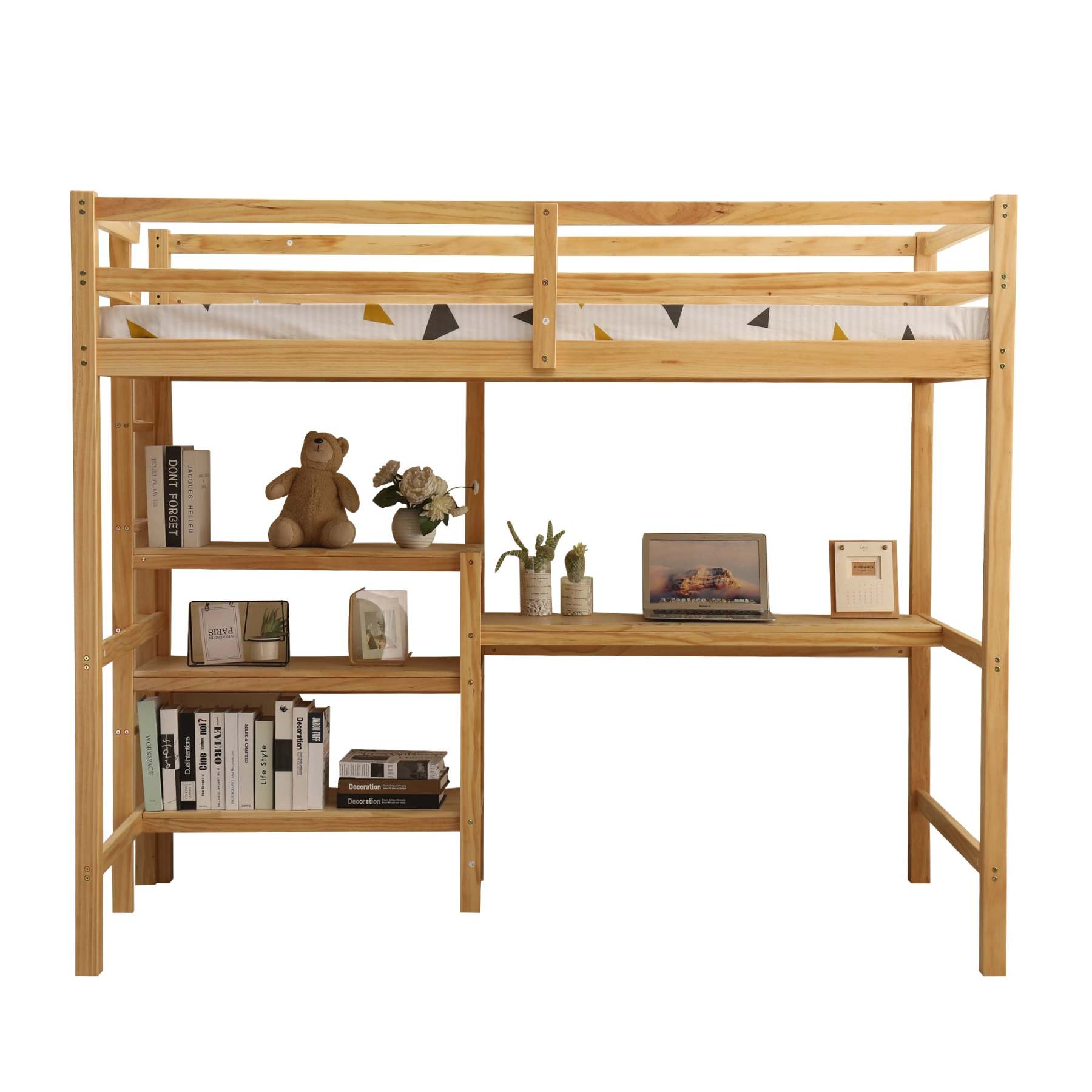 木製デスク付きロフトベッド