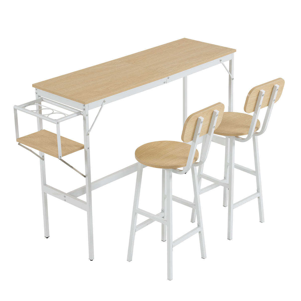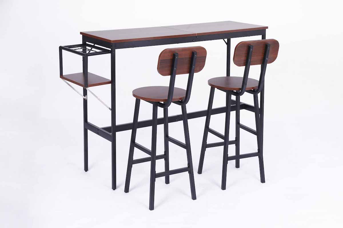 - 【快適な使用体験】テーブルと2脚のチェアがセットになっており、統一感のあるインテリアを実現します。サイドには収納棚が付いており、ワインボトルや小物を収納可能です。これにより、整理整頓されたダイニング空間を提供します。