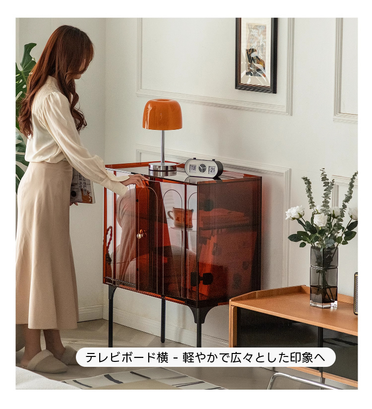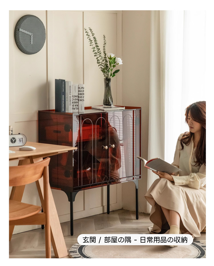 - 【モダンなデザインと実用性を兼ね備えたキャビネット】:このキャビネットは、モダンなデザインと実用性を兼ね備えた収納家具です。アクリル素材を使用し、ガラス以上の透明感と耐久性を持っています。収納物が見やすく、取り出しやすい設計で、リビングやダイニング、玄関など様々な場所に適しています。