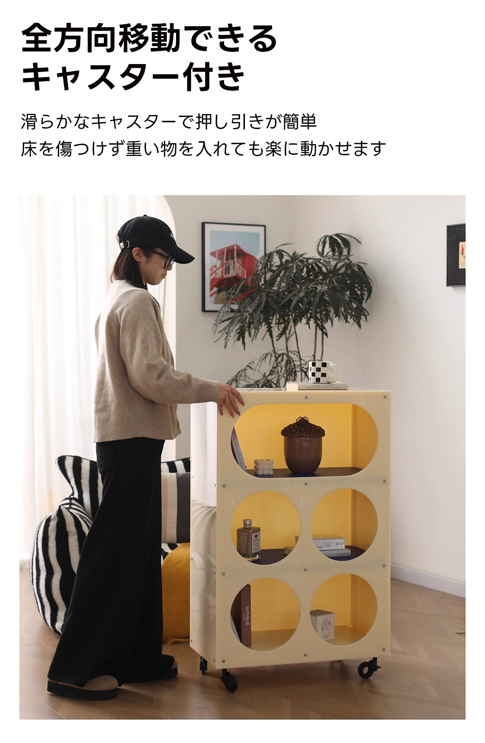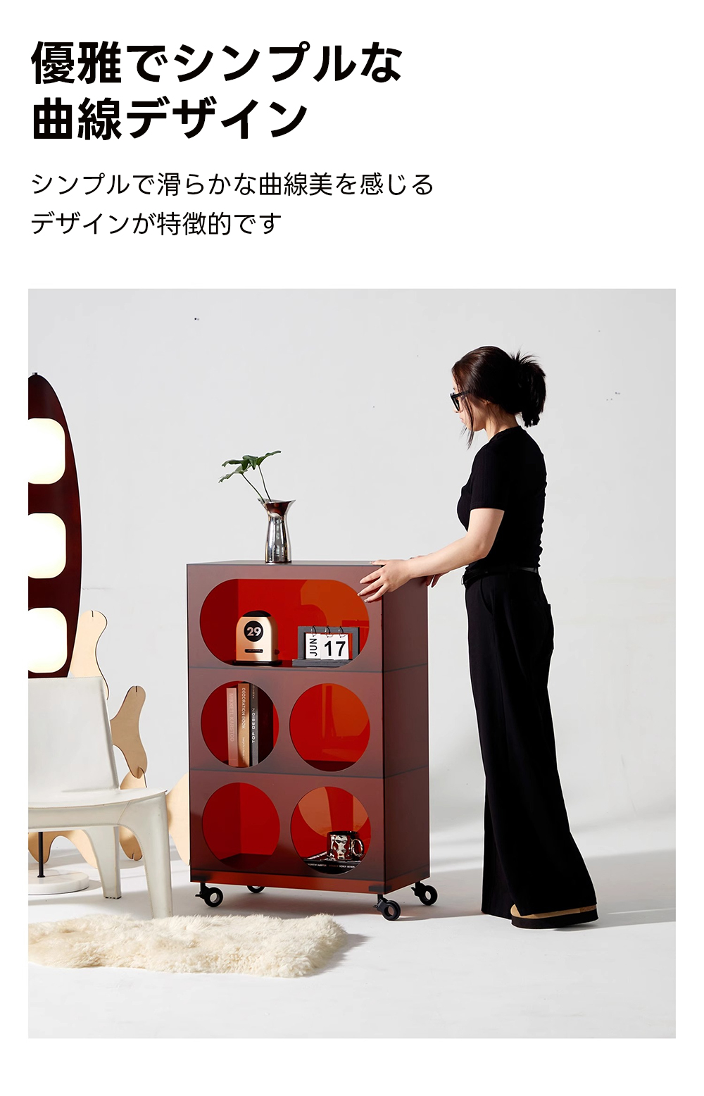 - 【多機能収納と移動の利便性】キャスター付きサイドボードは、全方向に移動可能なキャスターを備え、重い物を入れても簡単に移動できます。ワンタッチで安心のブレーキ機能も搭載されており、安定した使用感を提供します。