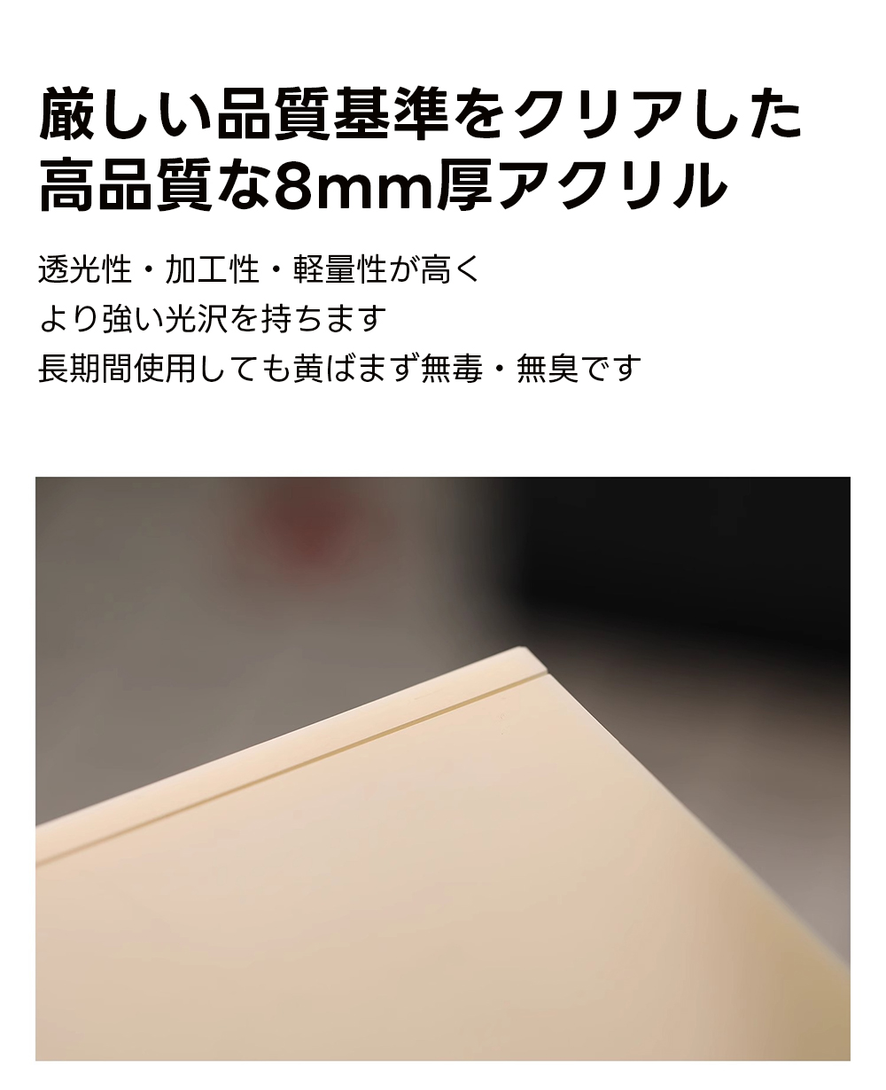 - 【高品質アクリル素材と洗練されたデザイン】8mm厚の高品質アクリルを使用し、透光性と加工性に優れた素材が美しいブラウンカラーと相まって、落ち着いた印象を与えます。どんなインテリアにも自然に溶け込みます。