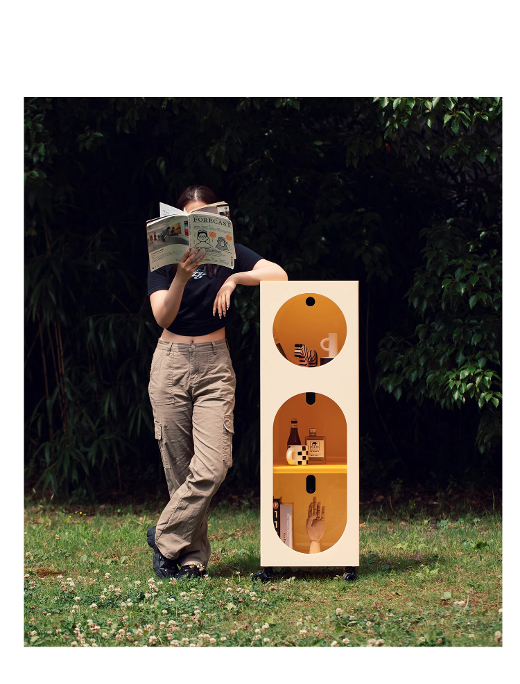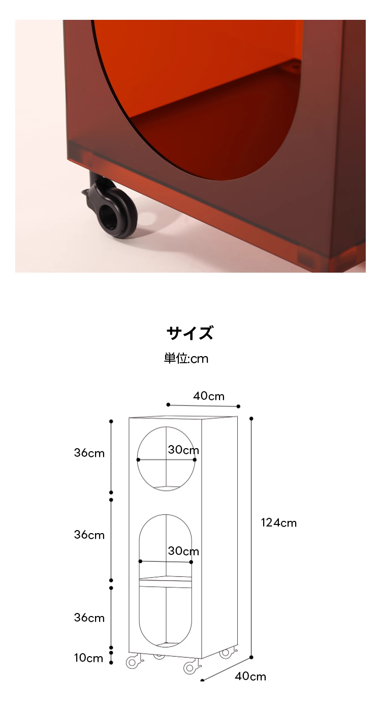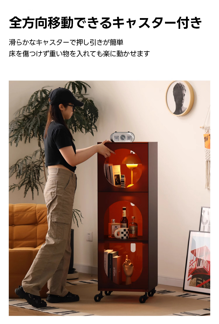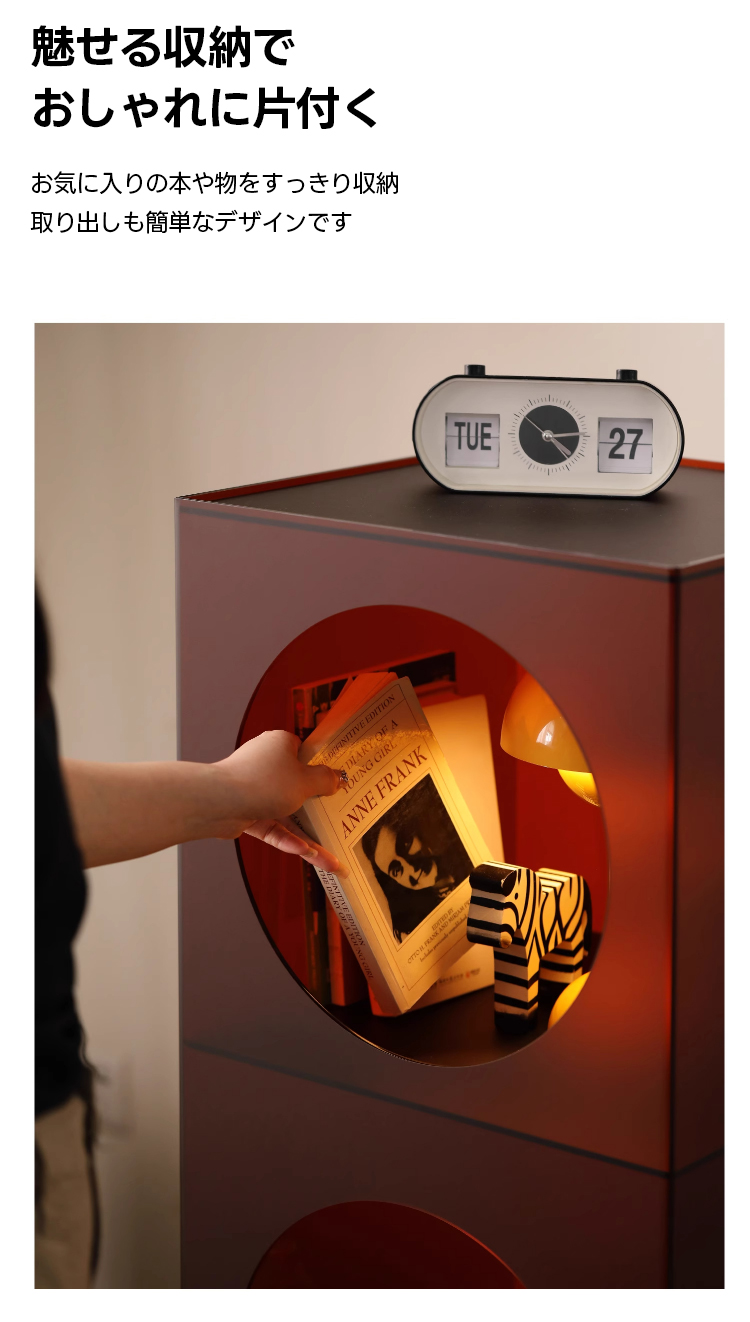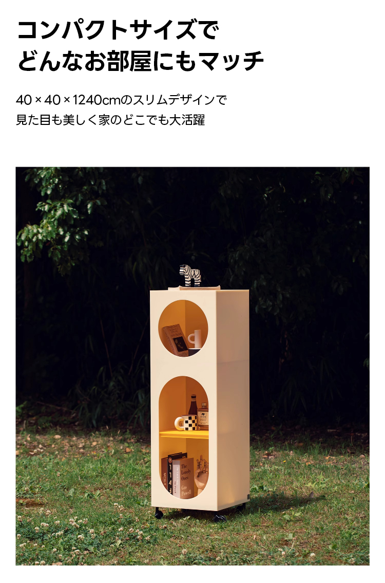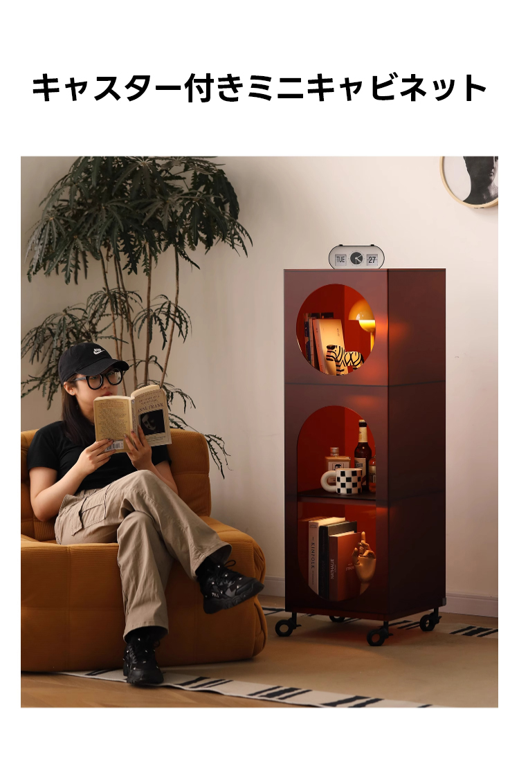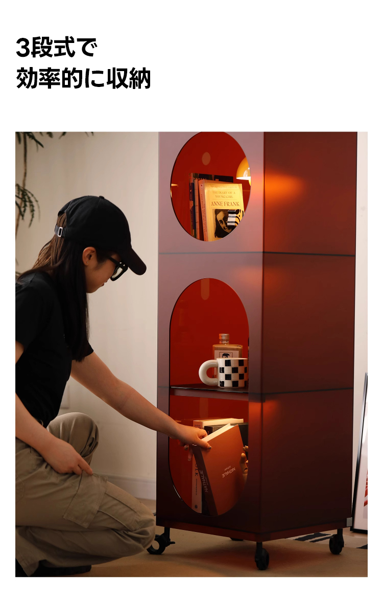 - 【機能的な収納力】キャスター付きミニキャビネットは、3段式の収納スペースを備え、本や雑誌、食器、飾りなどを効率的に収納できます。丸型と長方形の棚が組み合わさり、実用性とデザイン性を兼ね備えています。