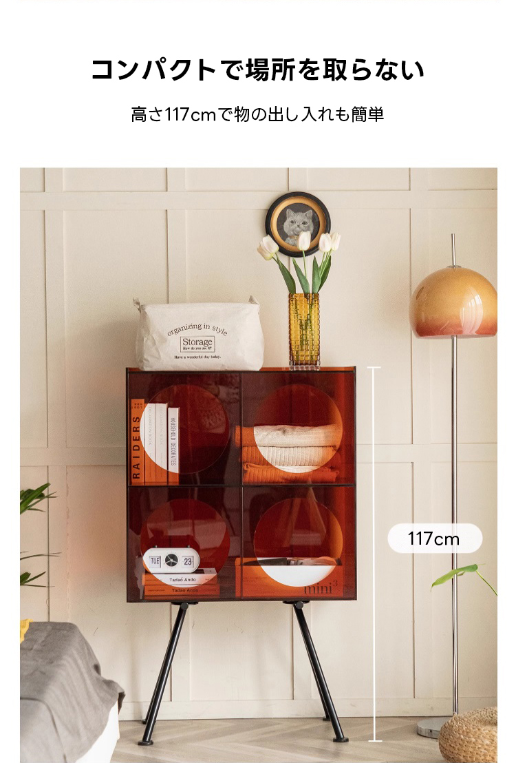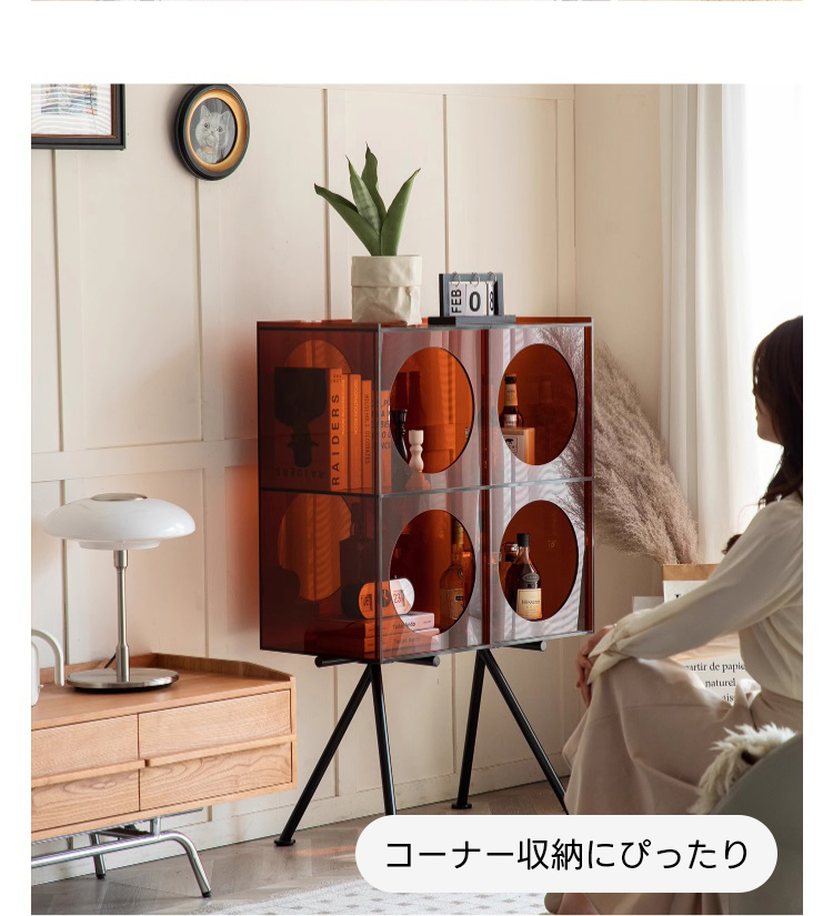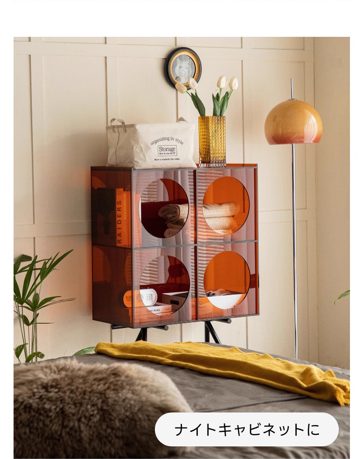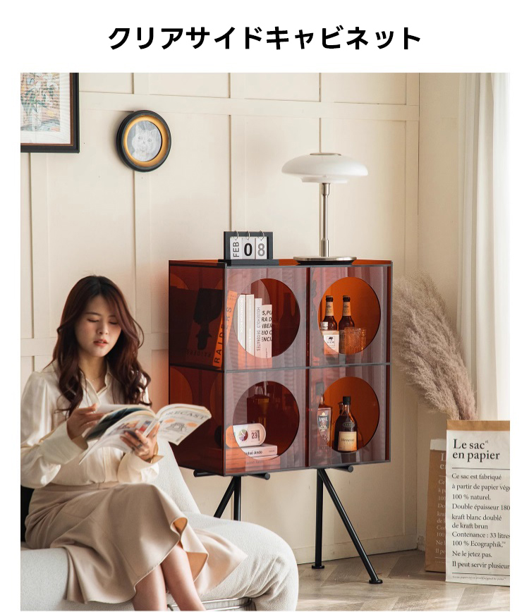 - 【多機能収納キャビネット】クリアサイドキャビネットは、北欧風デザインと優れた機能性を兼ね備えた収納家具です。リビングや寝室、ダイニングなど様々な場所で使用可能。アクリル素材を使用し、ガラスのような透明感と高い耐久性を実現しています。