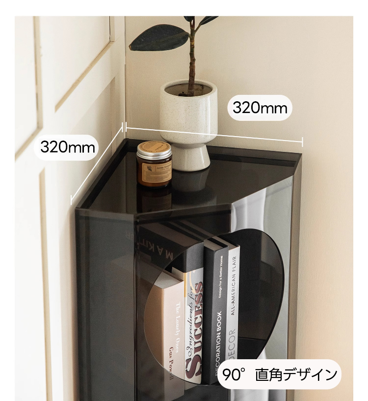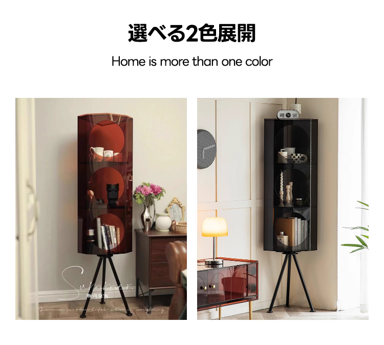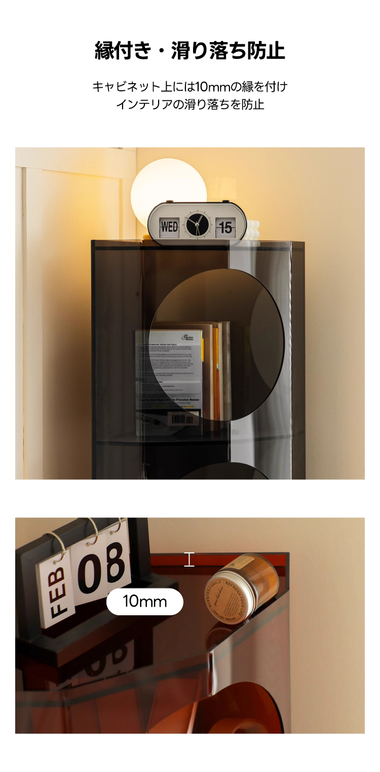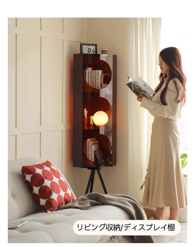 - 【未使用の角スペースを有効活用】MonoLucentクリアコーナーキャビネットは、未使用の角スペースを最大限に活用するために設計されています。丸い穴のデザインが特徴で、ワインやフィギュア、本などをすっきりと収納可能です。