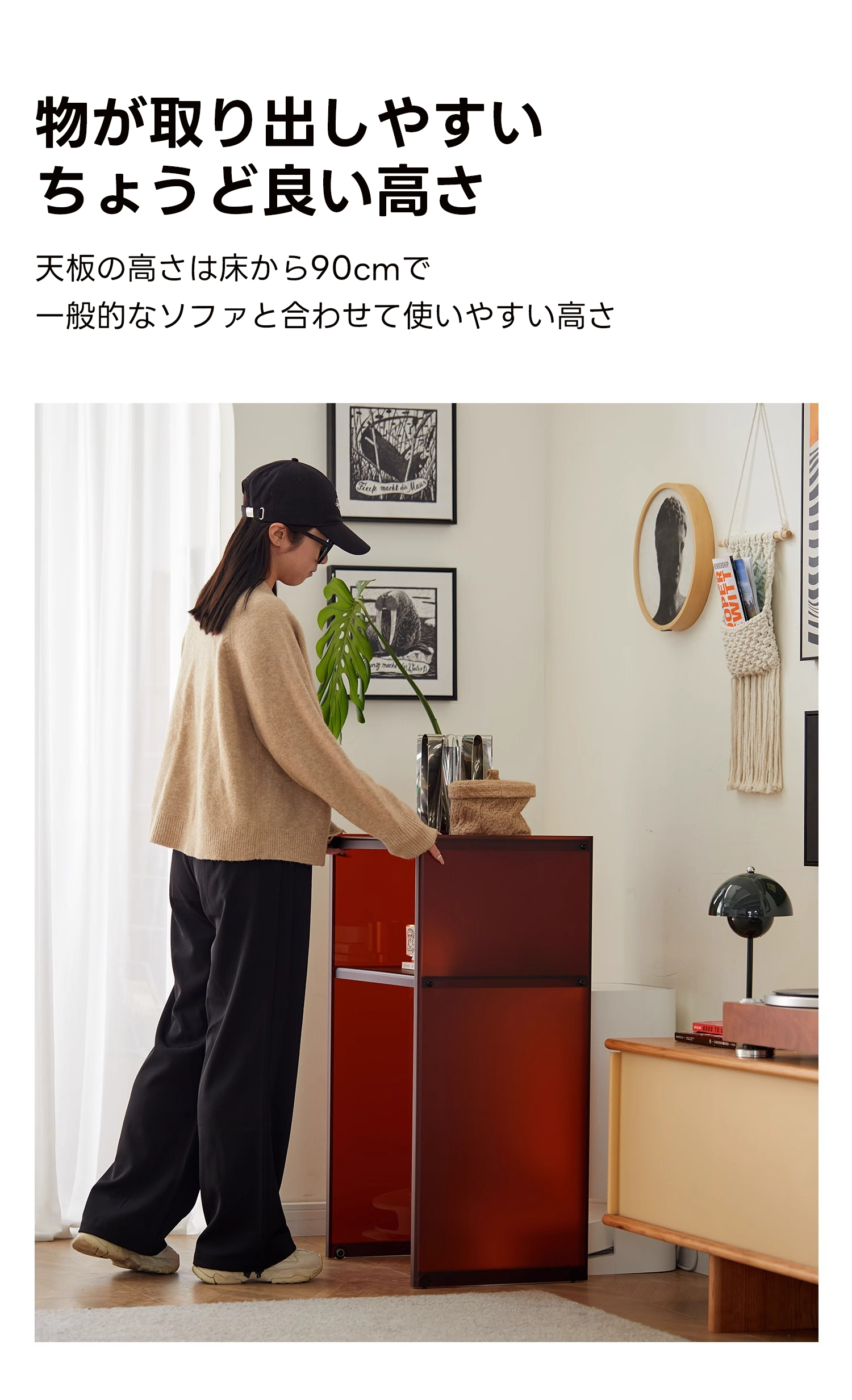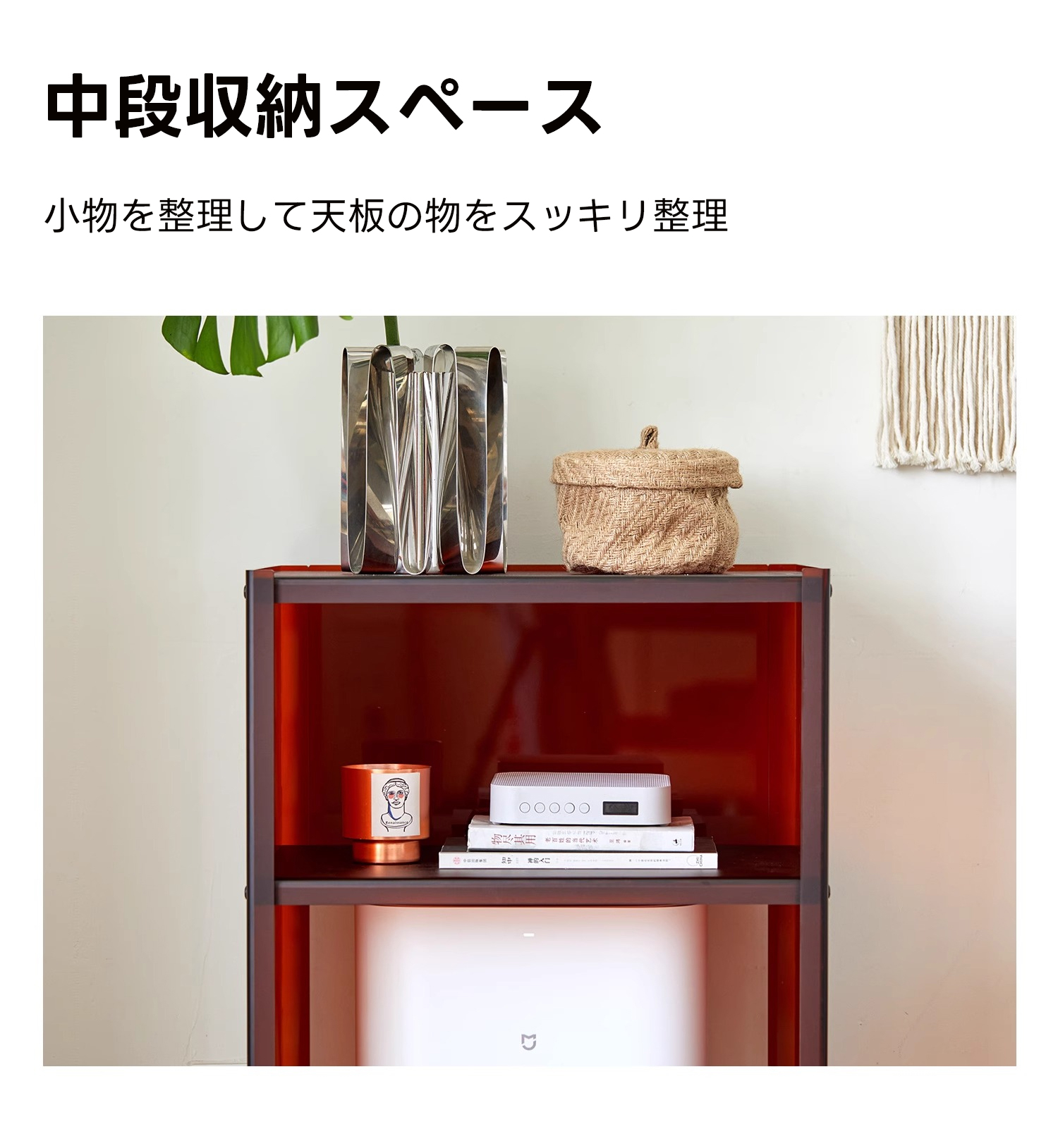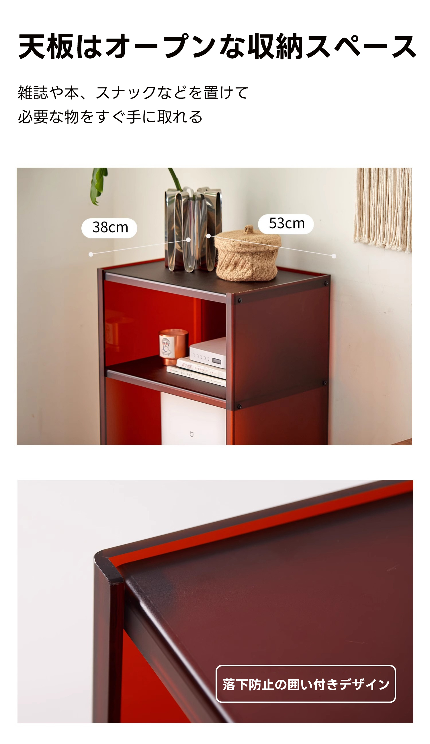 - 【多機能収納スペース】3段の収納スペースを備えたロボット掃除機収納キャビネットは、小物や雑誌もすっきりと片付けられます。天板はオープンデザインで、ディスプレイ棚としても活用可能です。