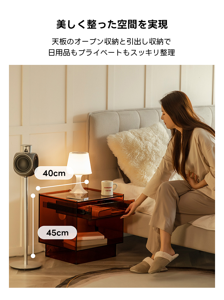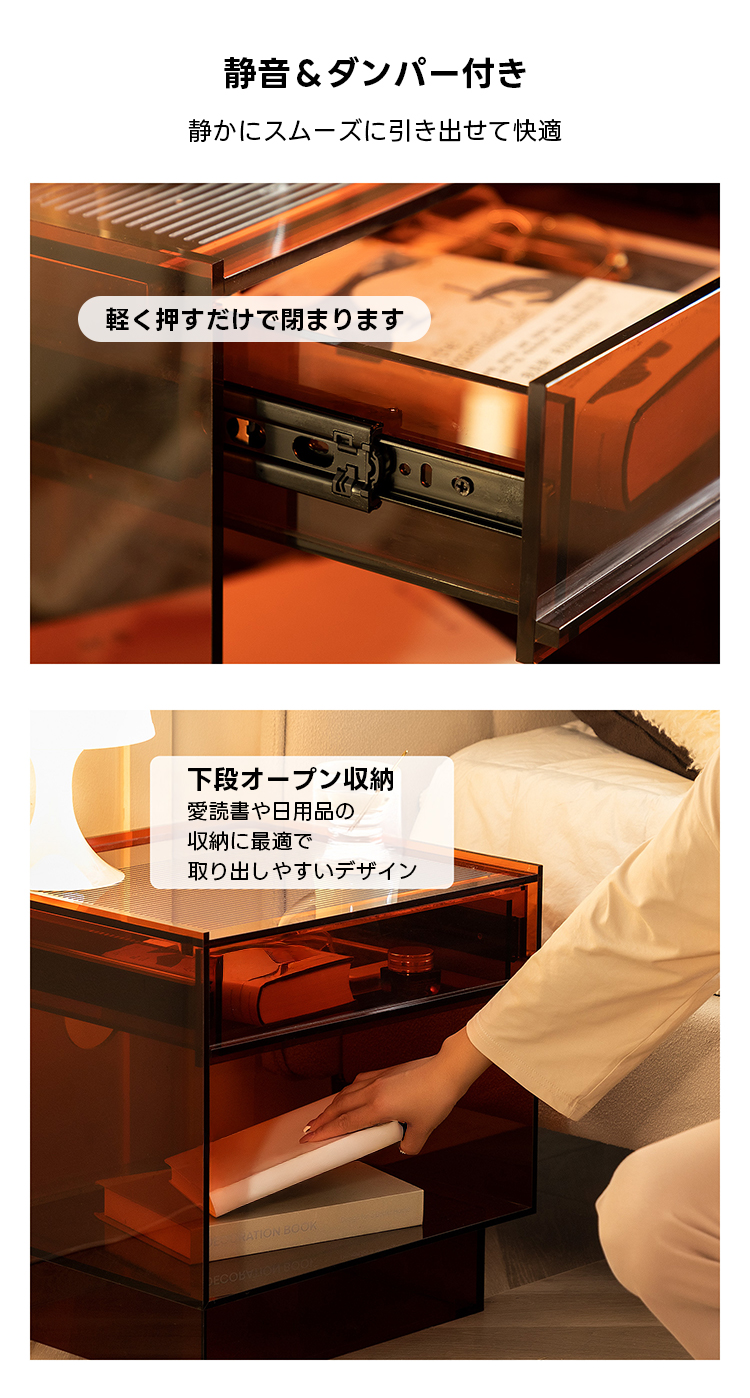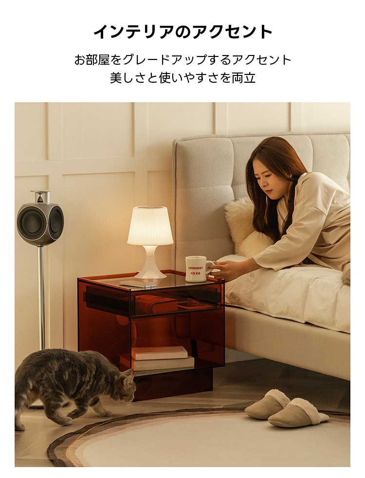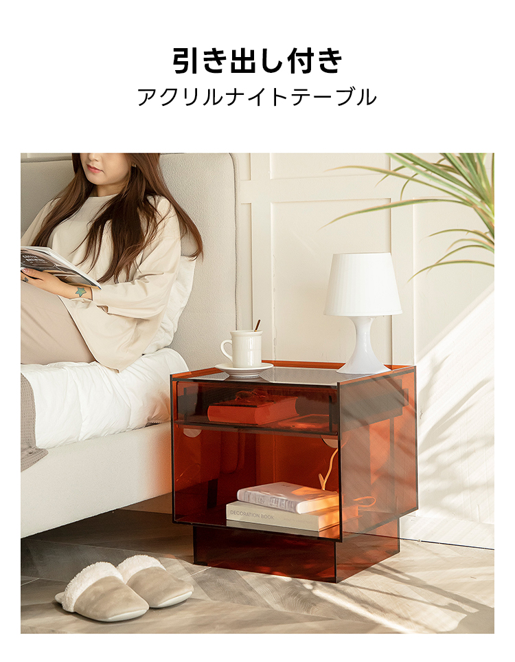 MonoLucent 引き出し付きアクリルナイトテーブル