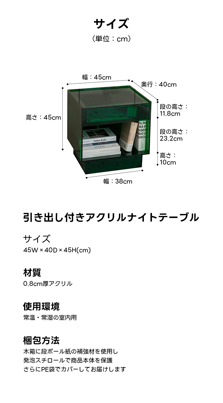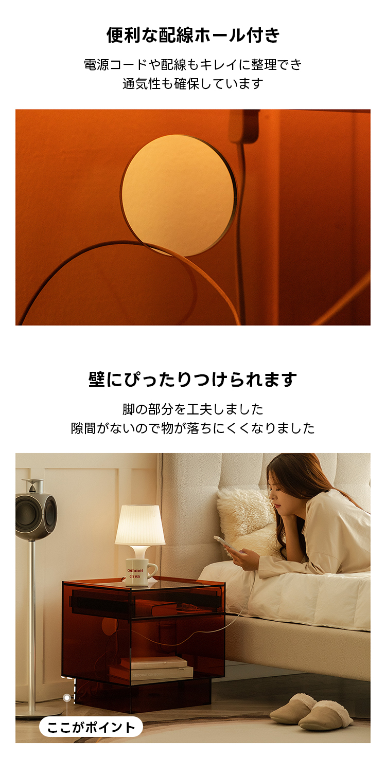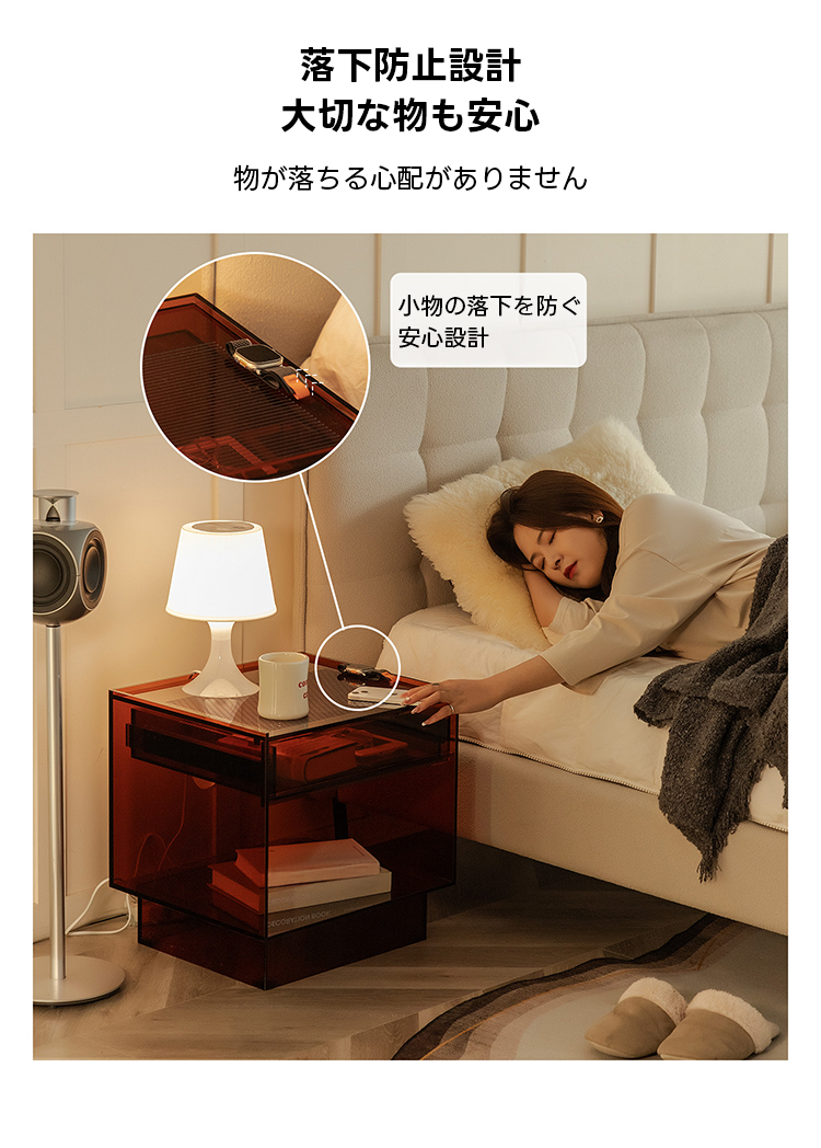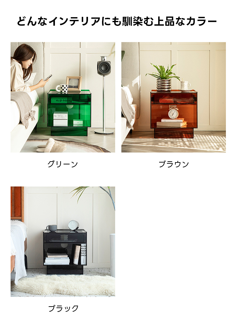 MonoLucent 引き出し付きアクリルナイトテーブル