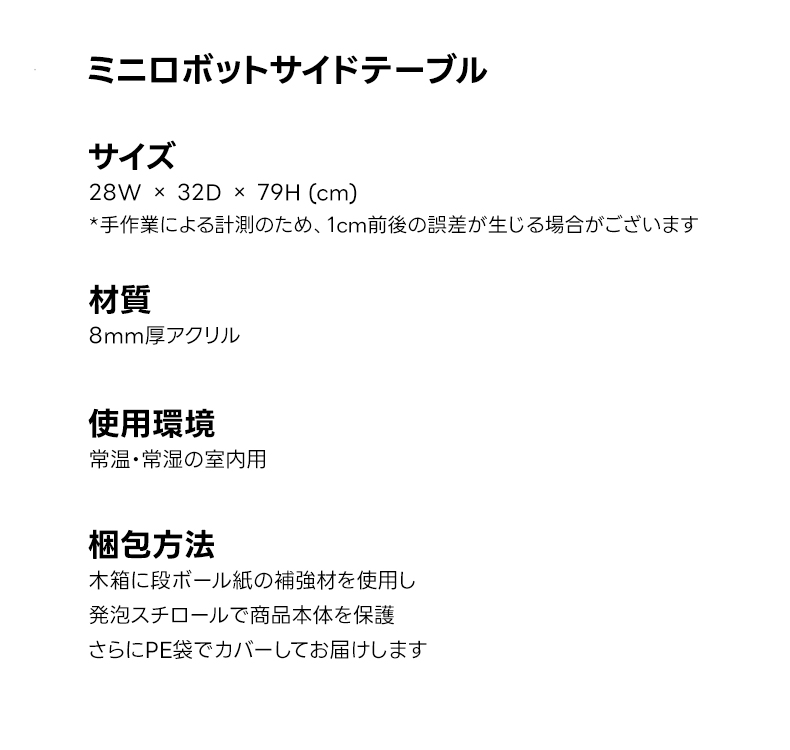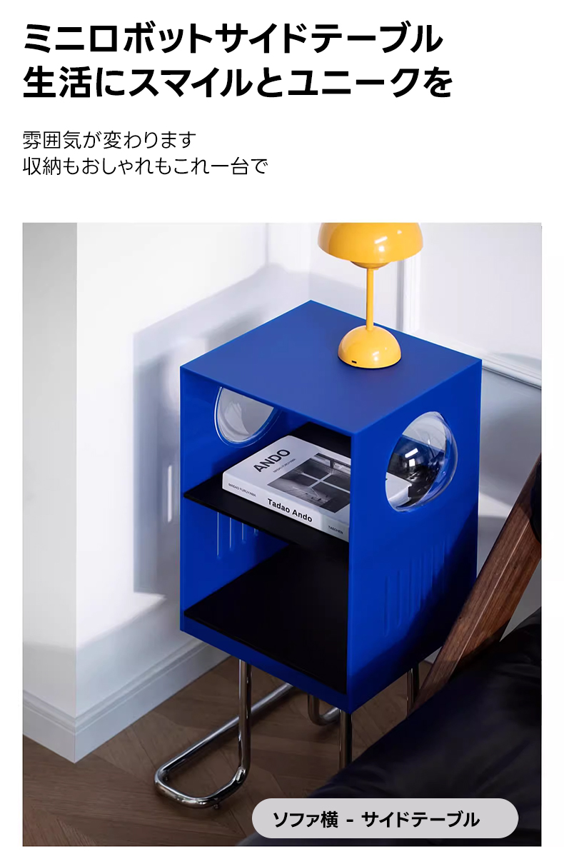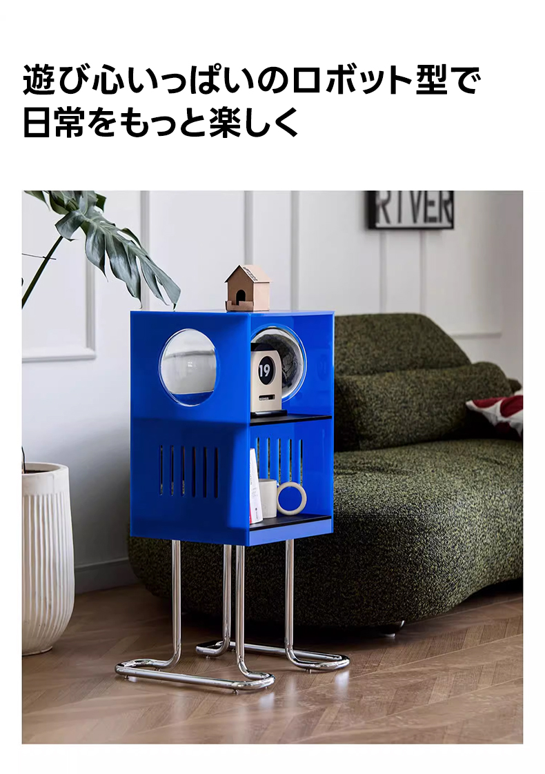 - 【ユニークなデザインと機能性】ミニロボットサイドテーブルは、ロボットを模した独特な形状が特徴です。ドーム型ウィンドウを備え、収納物をおしゃれにディスプレイ可能です。個性的なデザインがインテリアに遊び心をプラスします。
