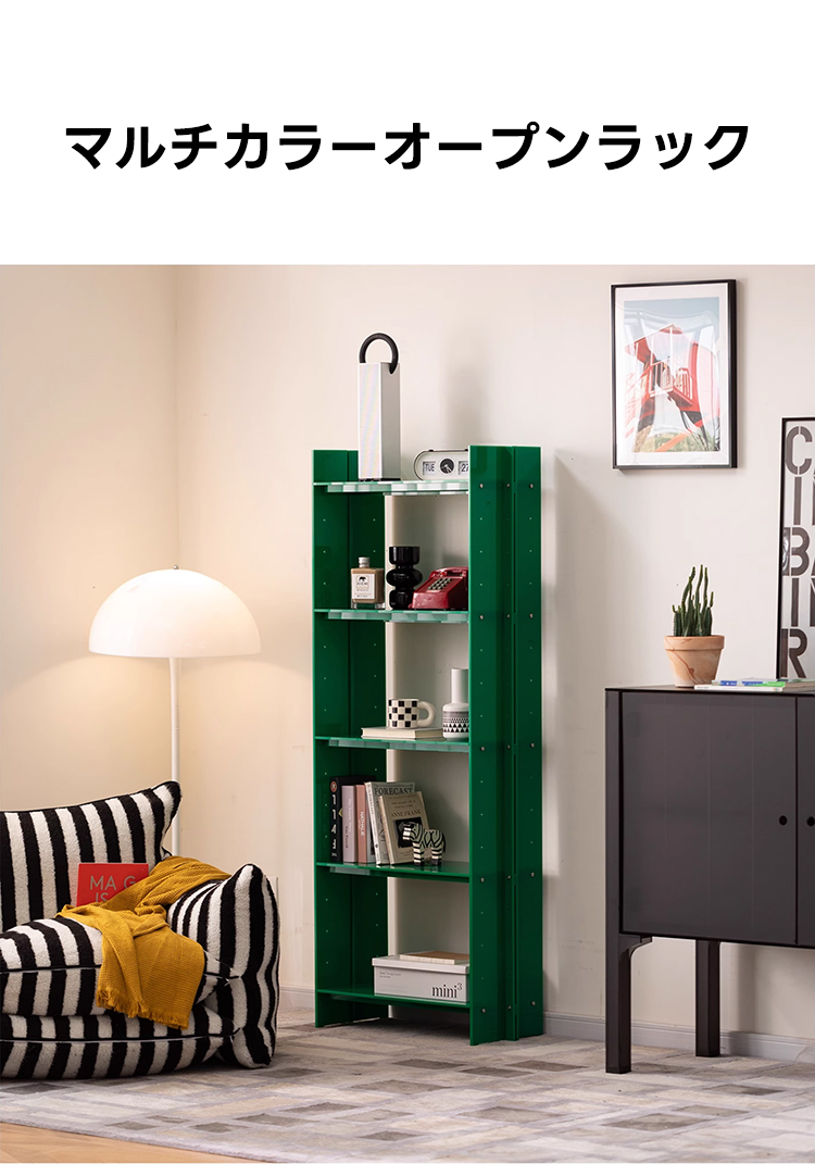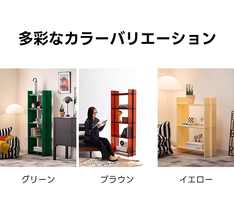 - 【多彩なカラーバリエーション】マルチカラーオープンラックは、グリーン、ブラウン、イエローの3色展開で、北欧風のインテリアにぴったりフィットします。お部屋の雰囲気に合わせてコーディネートが可能で、リビングやダイニング、書斎など様々な空間で活躍します。