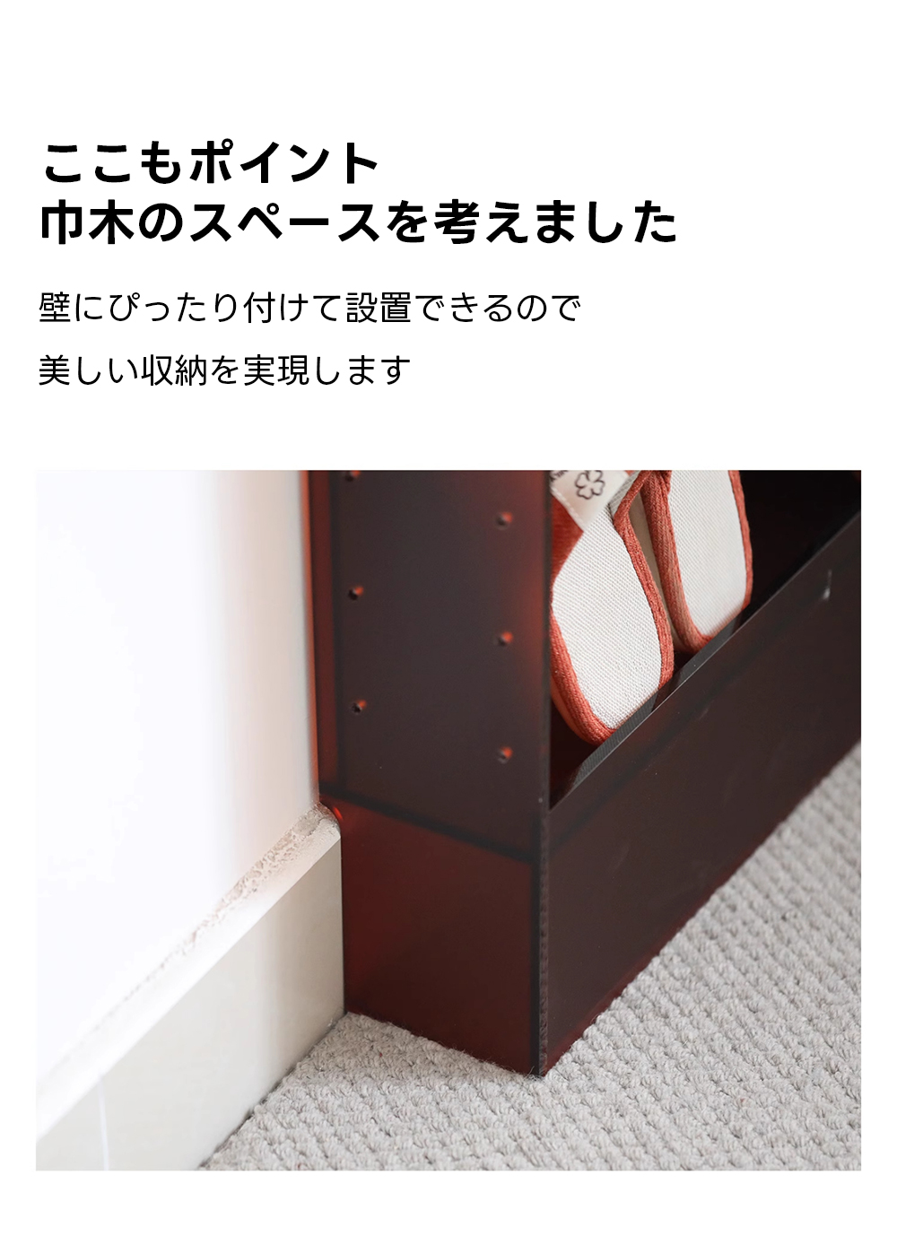 - 【スリム設計でスペースを有効活用】厚さわずか12cmのスリム設計により、狭いスペースでも無駄なく収納が可能です。壁や家具の隙間にぴったりフィットし、効率的に収納スペースを確保します。