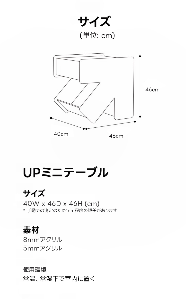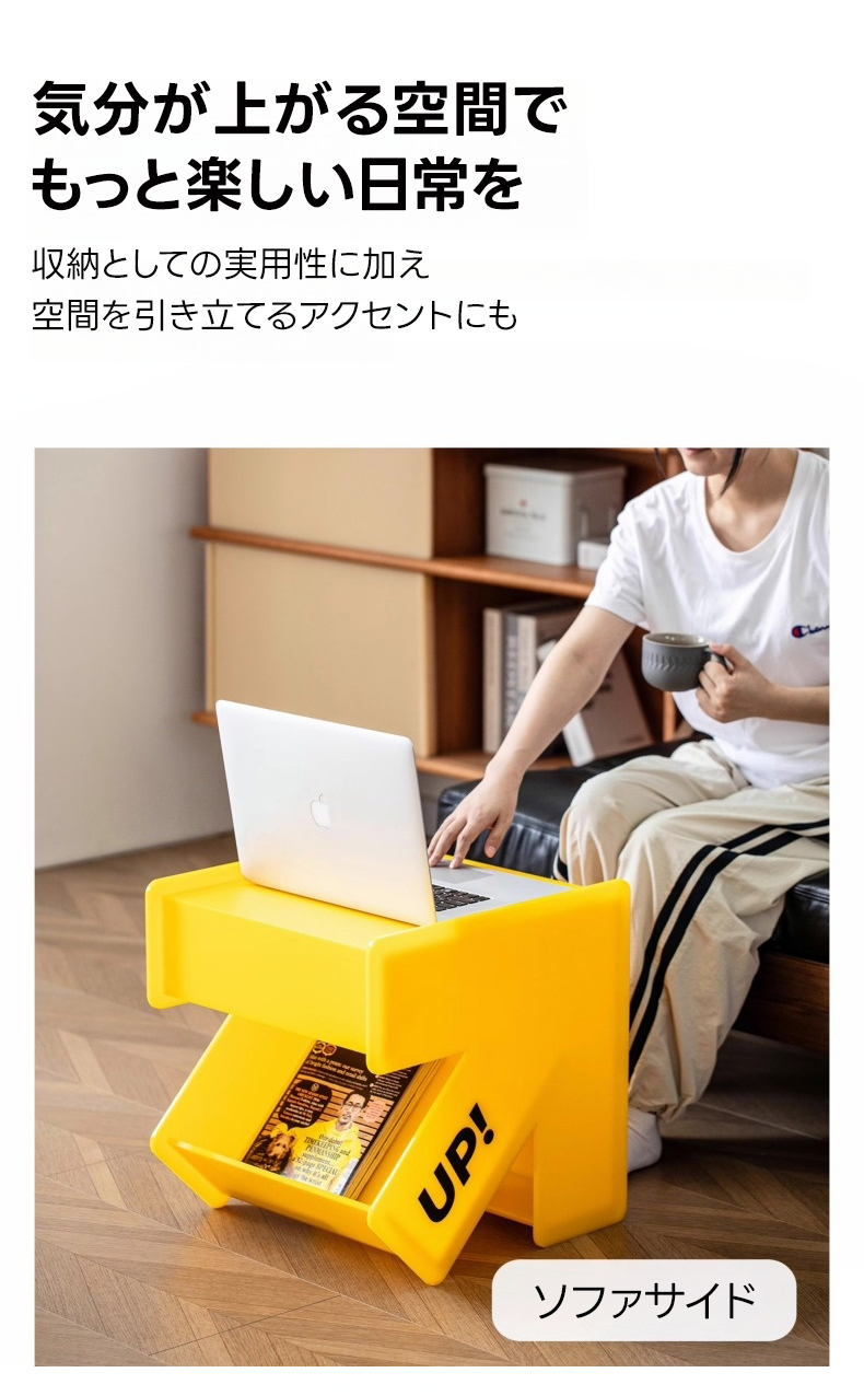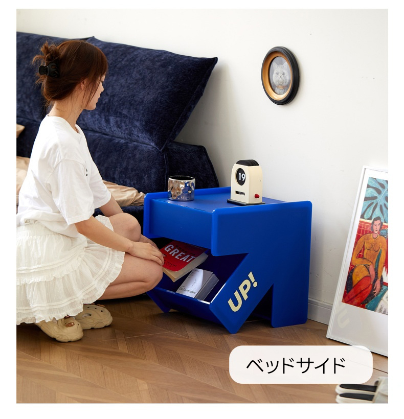 - 【ユニークなデザインと機能性】UPデザインミニテーブルは、矢印型のユニークなデザインで空間にアクセントを加えます。リビングや寝室での使用に最適なサイズで、サイドテーブルやナイトテーブルとしての機能を果たします。