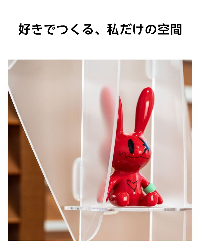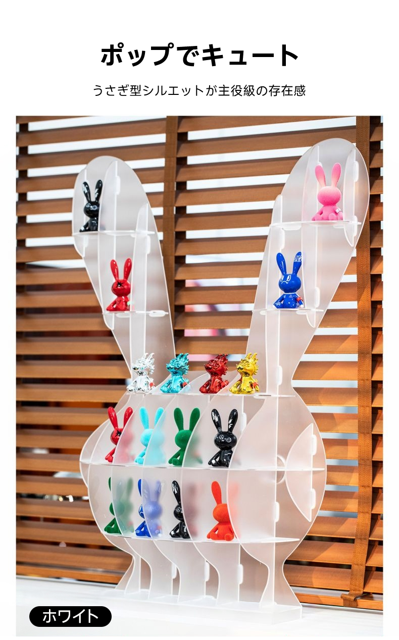 - 【うさぎ型デザインで遊び心をプラス】このディスプレイラックは、うさぎのシルエットが目を引くデザインで、インテリアに遊び心を加えます。リビングや寝室、書斎など様々な空間にマッチし、個性的な空間を演出します。