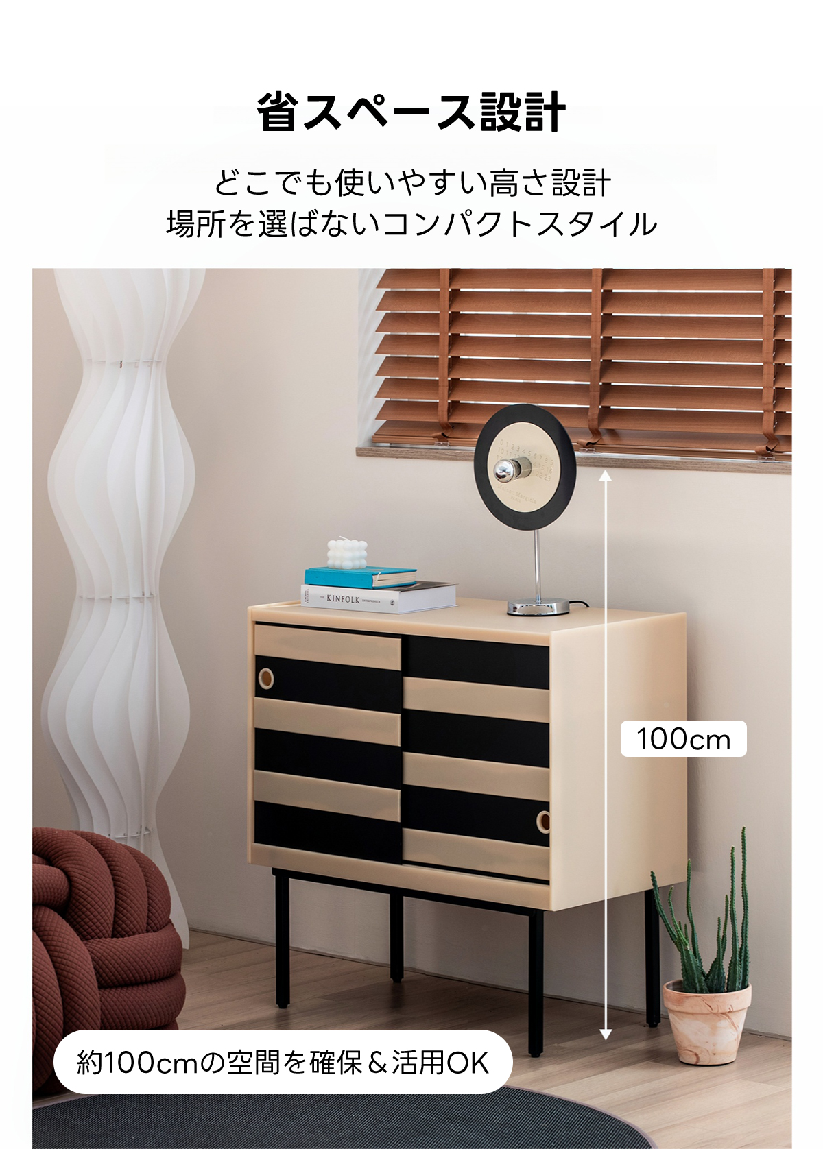 - 【優れた収納機能】ストライプデザインキャビネットは、幅120cm、奥行38cm、高さ90cmのコンパクトサイズながら、調整可能な棚を備え、効率的な収納を実現。リビングや寝室のサイドボードとして最適です。