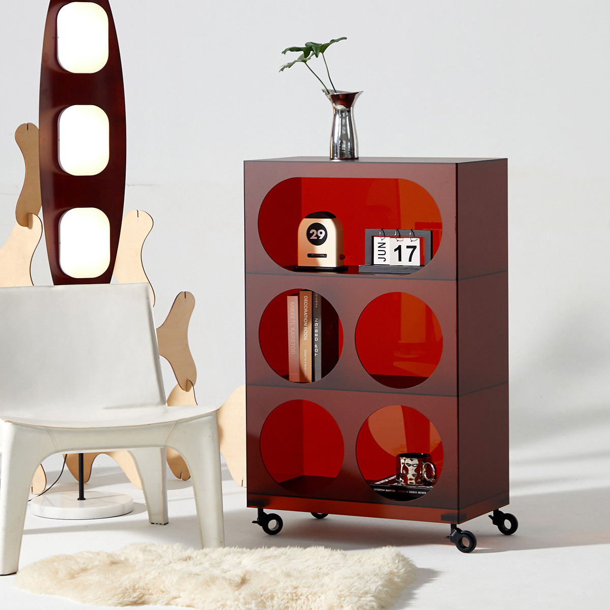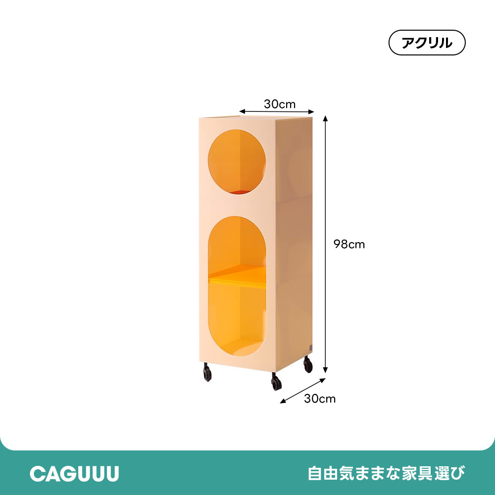 - 【使いやすさを追求】大きな丸穴デザインにより、高さや幅のあるアイテムも収納でき、出し入れがしやすいです。キャスター付きで移動が簡単、重いものを載せてもスムーズに動かせます。