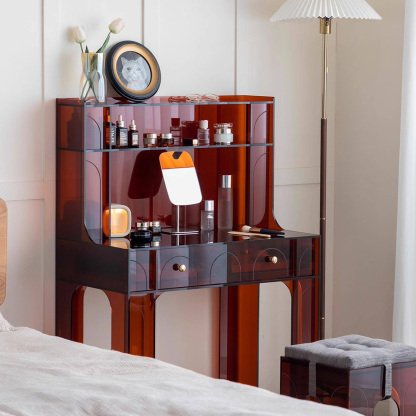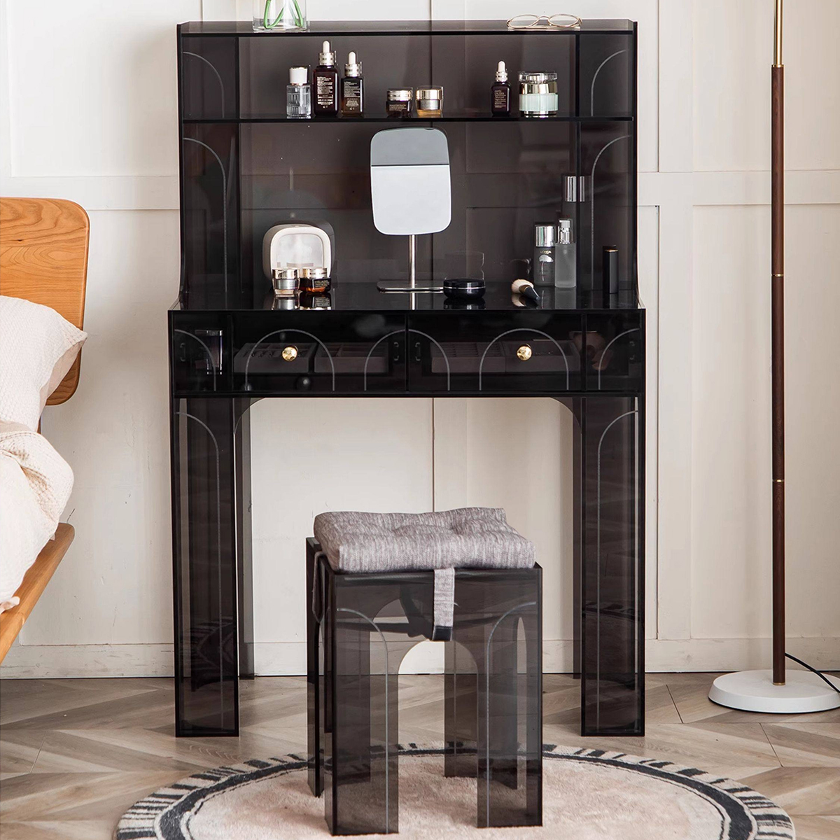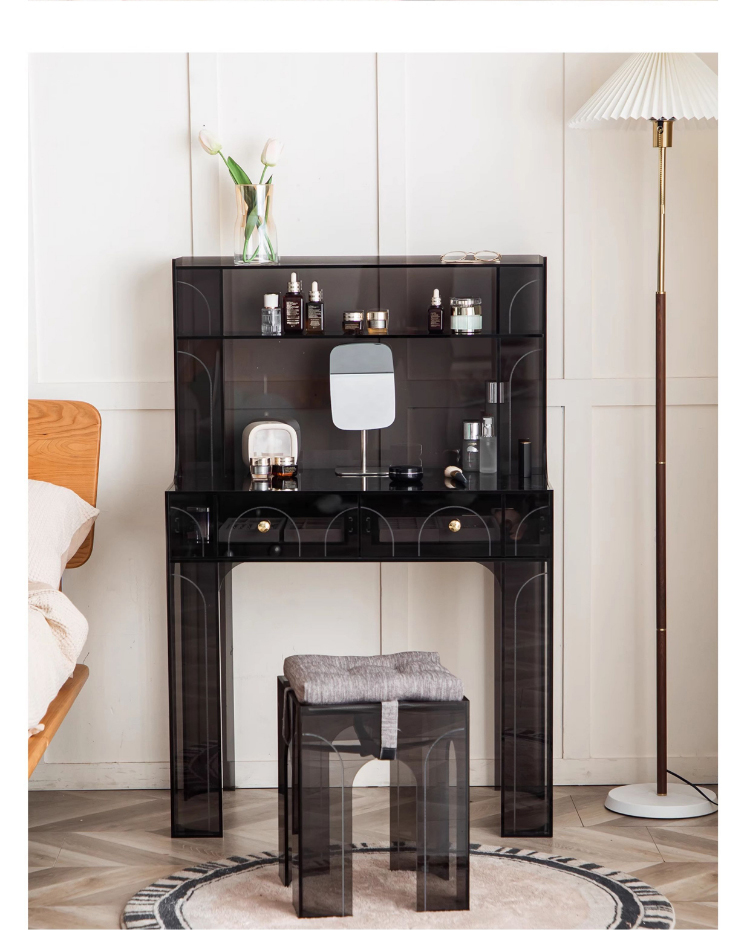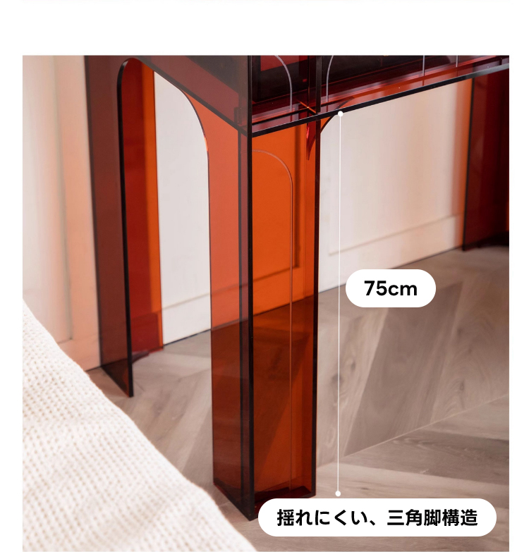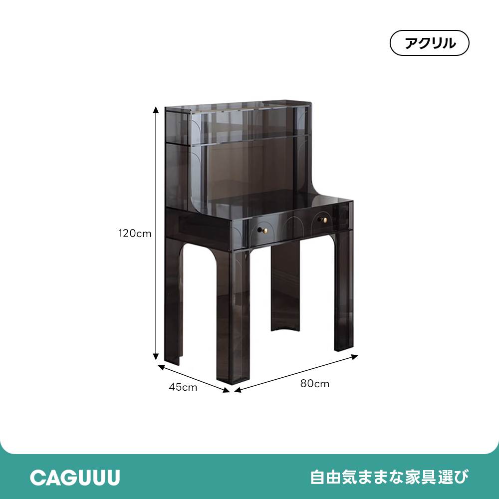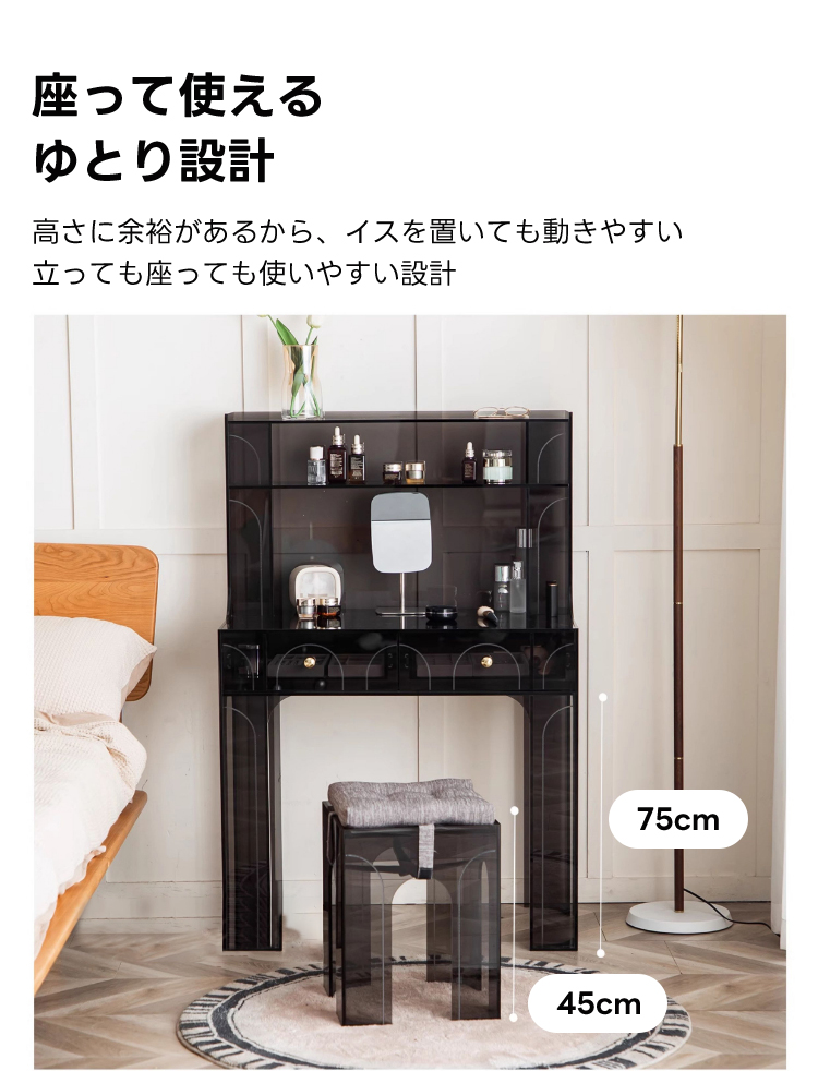 - 【シンプルモダンなデザインと機能性】:クリアドレッサーデスクは、シンプルでモダンなデザインが特徴です。アクリル素材を使用し、透明感が空間を広く見せます。ブラックとブラウンの2色展開で、どんなインテリアにも調和します。