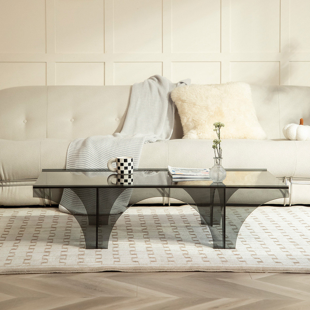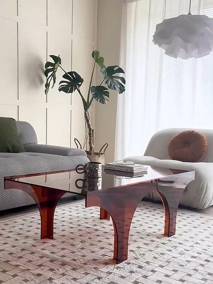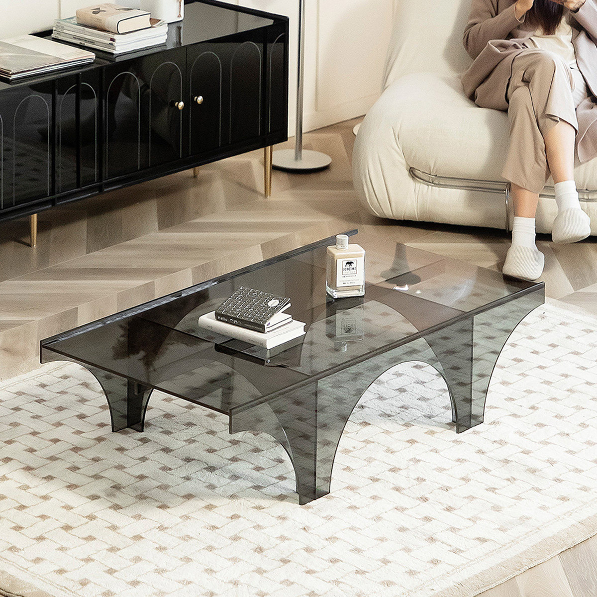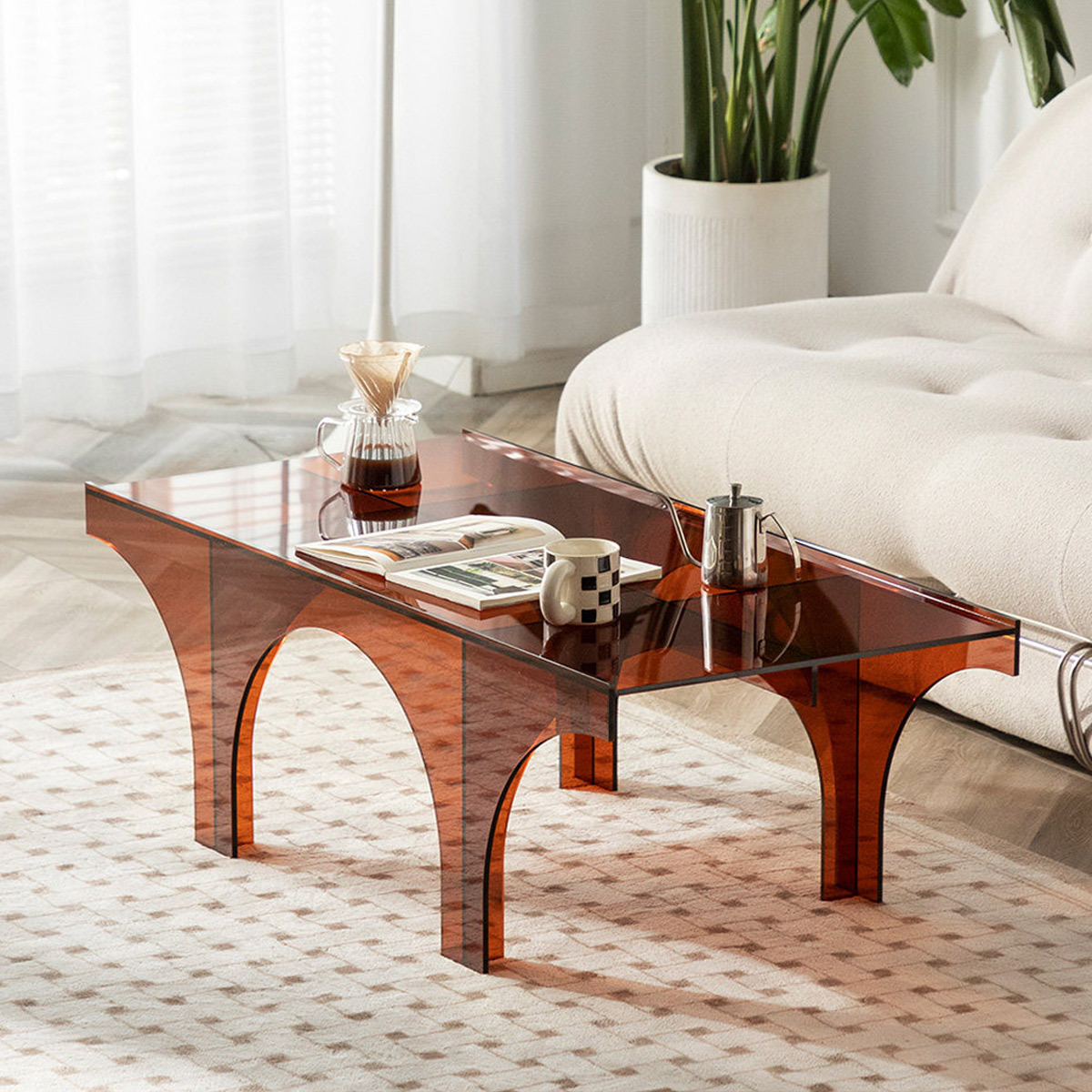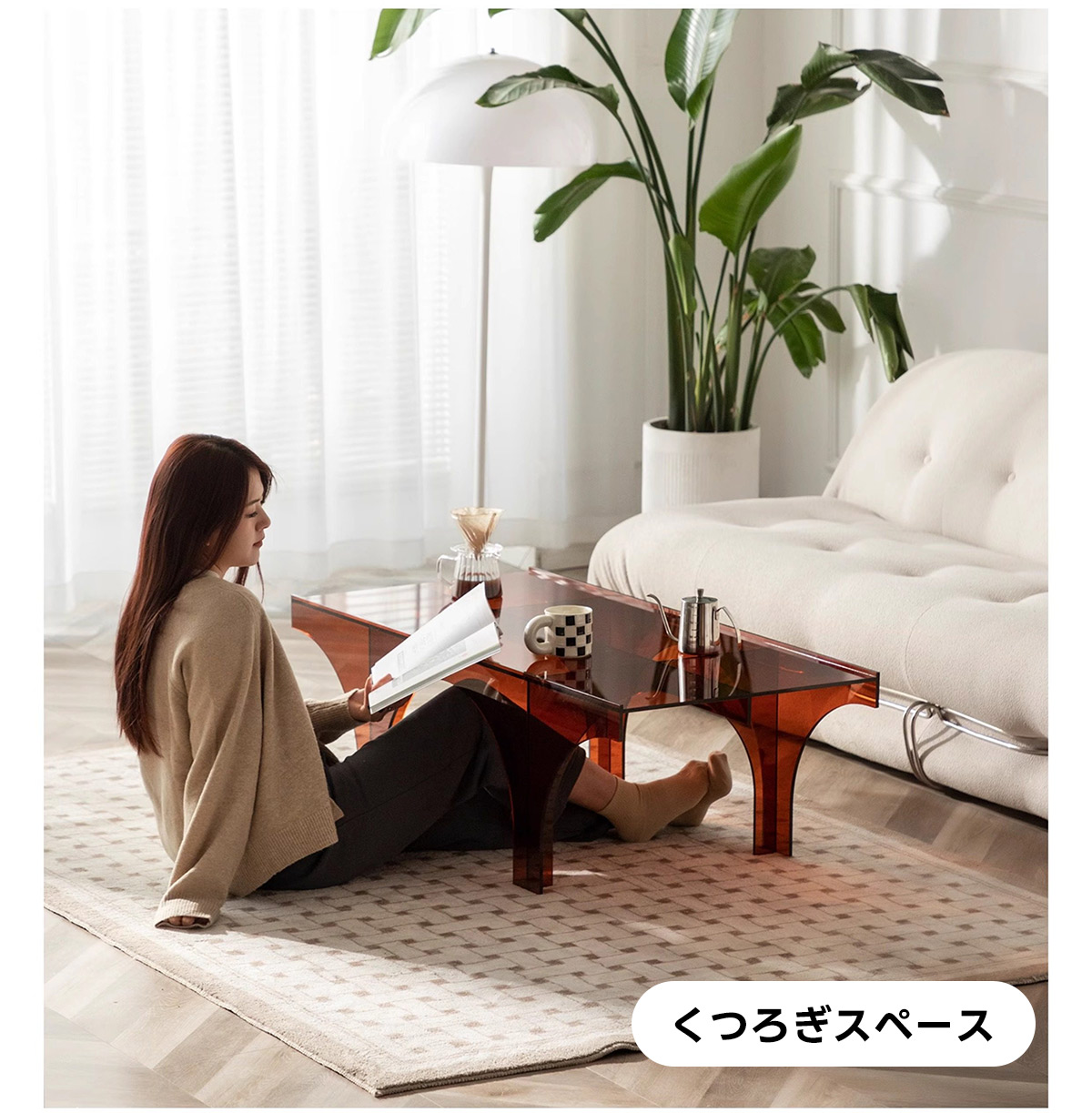 - 【シンプルモダンなデザイン】アーチ脚アクリルローテーブルは、シンプルモダンなデザインでリビングをスタイリッシュに演出します。透明感のあるアクリル素材を使用し、どんなインテリアにもマッチするグレーとダークレッドの2色展開です。