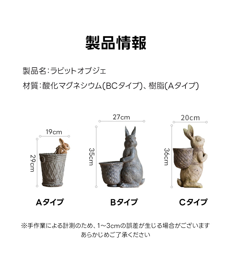 - 【魅力的なデザインと多機能性】このラビットオブジェは、アンティーク風のデザインで庭や玄関を華やかに彩ります。ウサギが持つバスケットには植物や小物を飾ることができ、インテリアとしても楽しめます。独特なデザインが空間に個性を与えます。