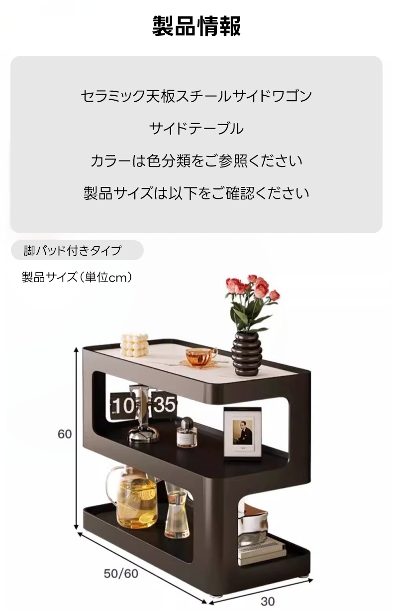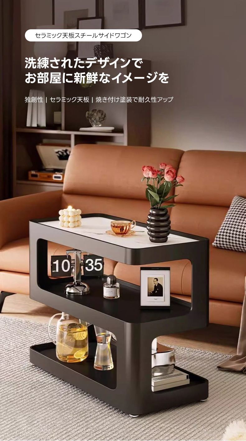 - 【多機能な収納スペース】セラミック天板スチールサイドワゴンは、3層のオープン収納スペースを提供し、日常品をすぐに取り出せる便利さを実現。キャスター付きで移動も簡単、様々なシーンで活躍します。