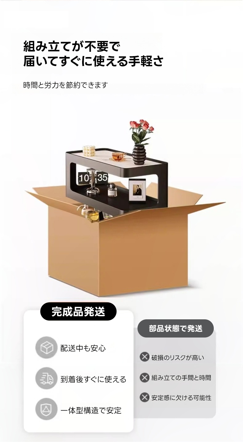- 【快適な使用体験】組み立て不要の完成品としてお届けするため、時間と手間を節約し、届いたその日からすぐにご利用いただけます。ラウンドコーナー加工により安全性も確保されており、家庭内で安心してお使いいただけます。