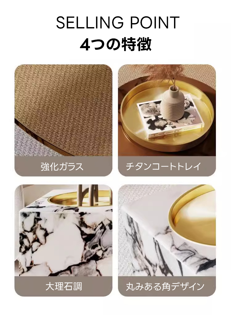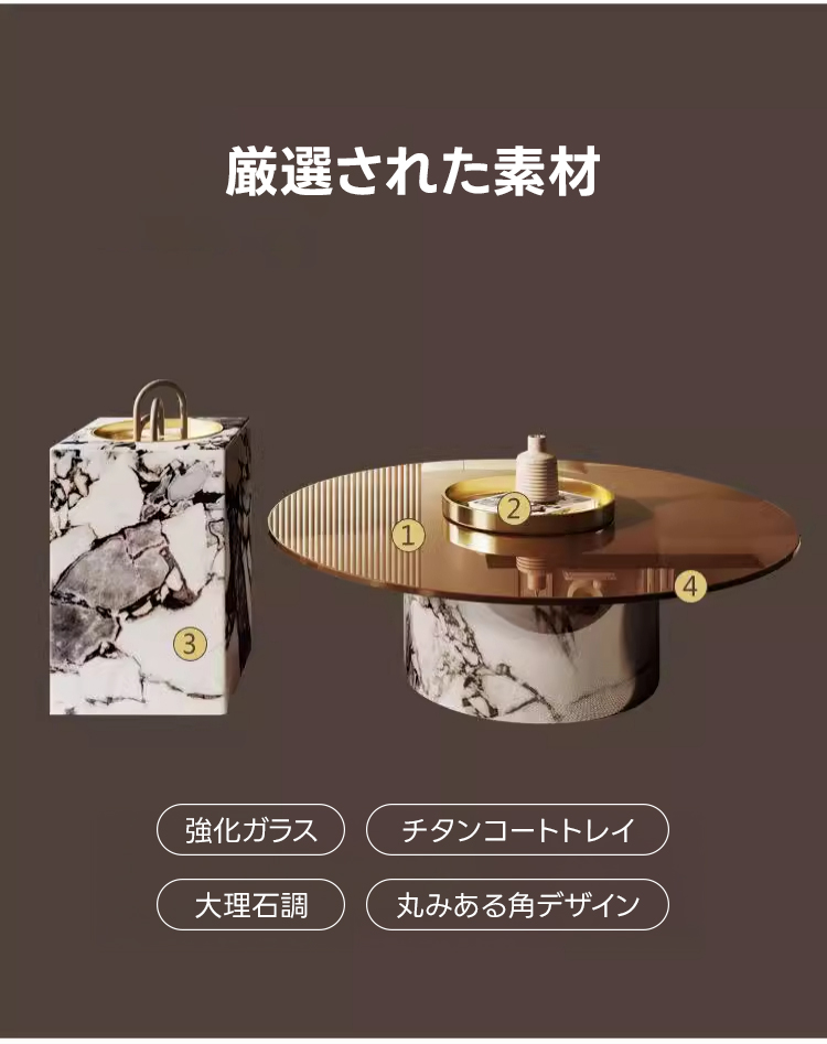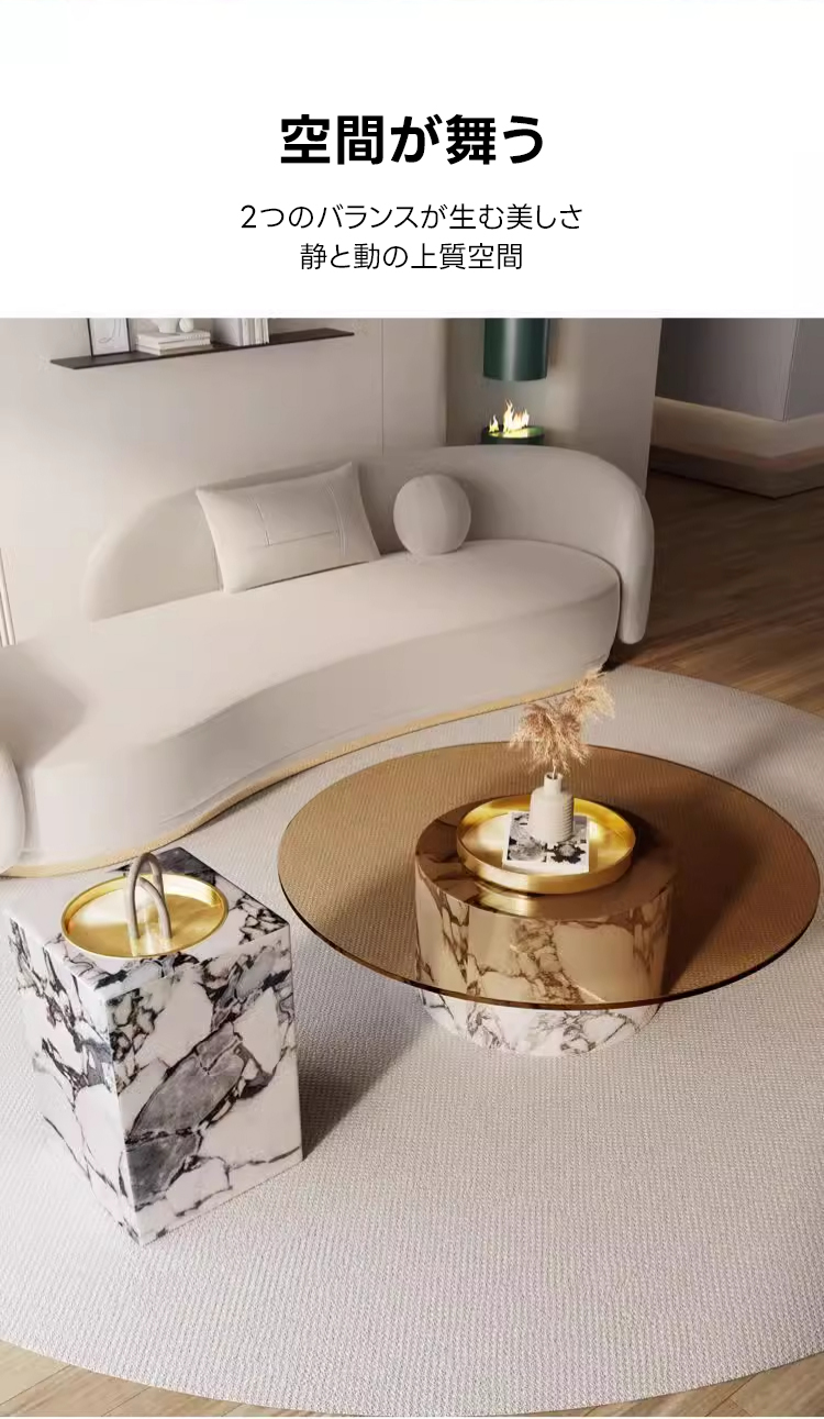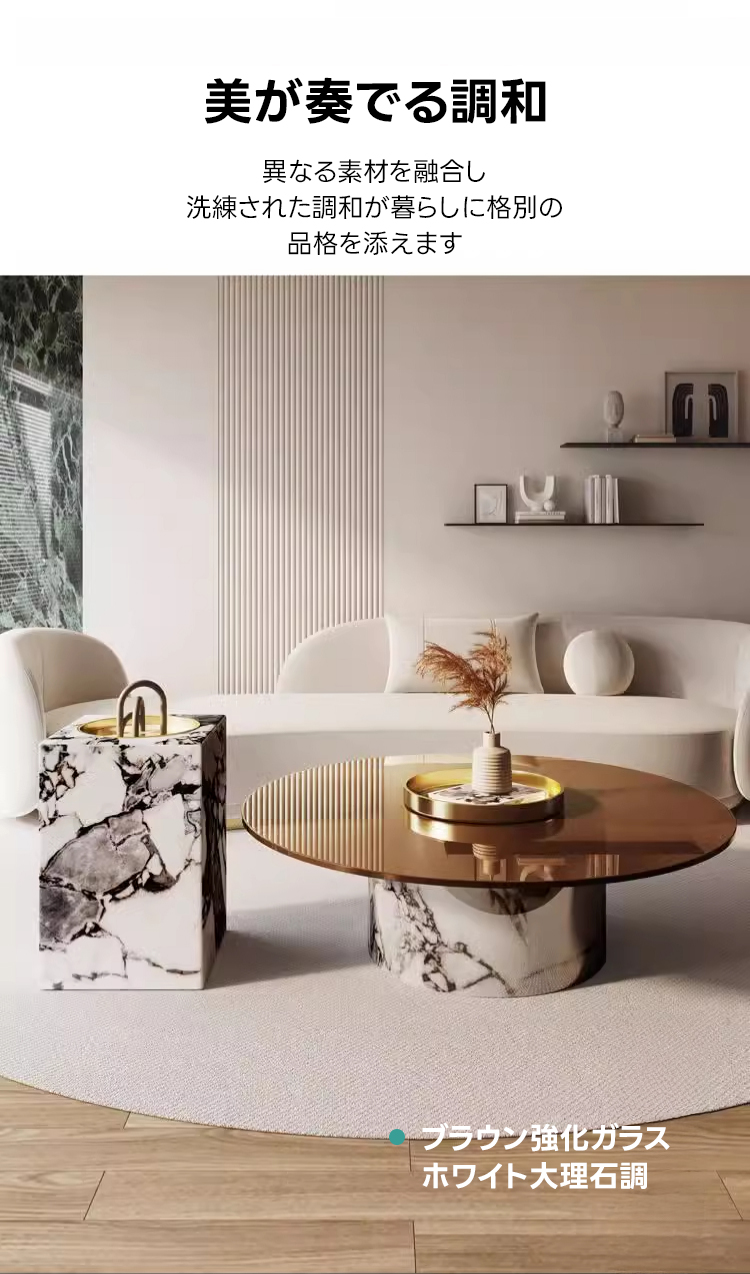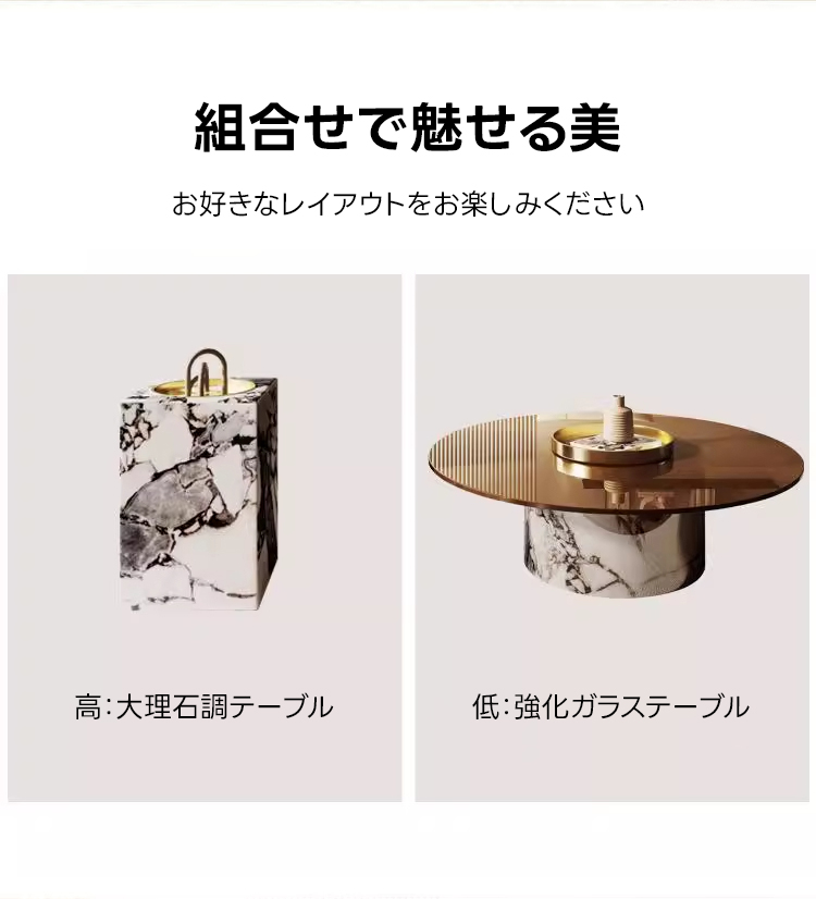 - 【日常生活を豊かにする体験】このテーブルは、組み立てが簡単で、異なる素材を融合させたデザインが空間に広がる統一美を演出します。小さなお子様がいる家庭でも安心してお使いいただける安全設計です。