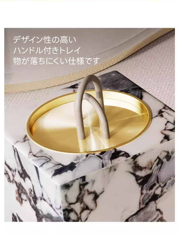 - 【高品質な材料と洗練されたデザイン】大理石調の美しい化粧板とステンレス製のチタンコートトレイを使用。お手入れが簡単で耐久性が高く、錆びにくいのが特徴です。丸みあるエッジ加工で安全性も考慮されています。