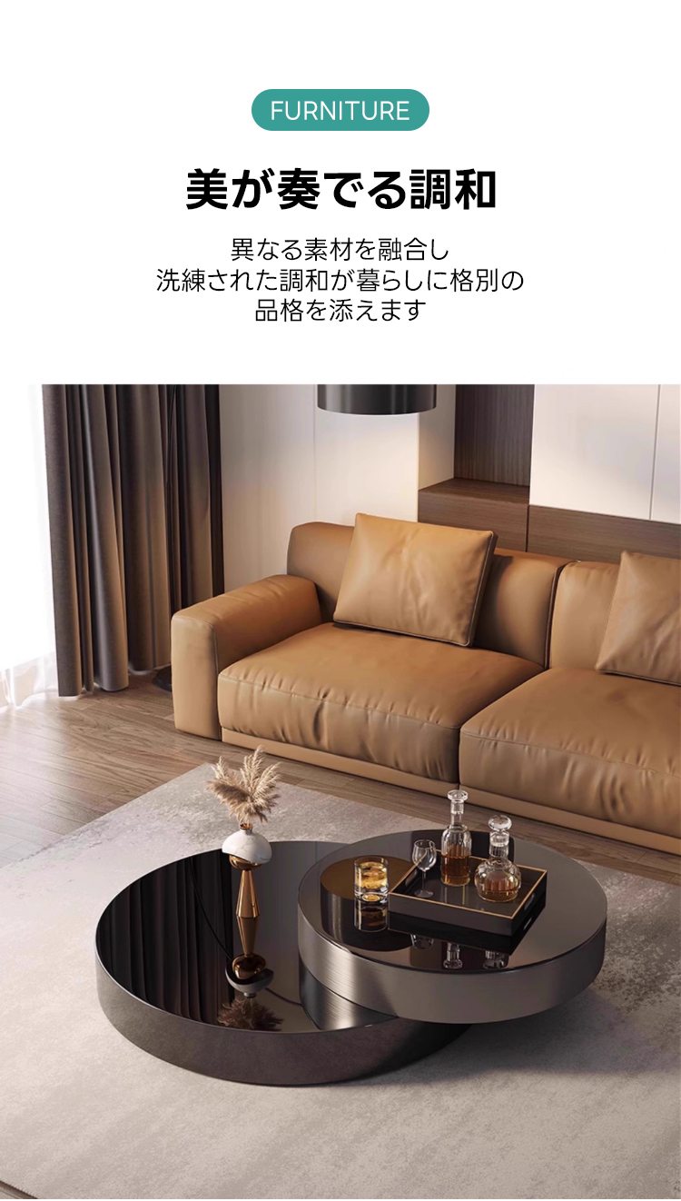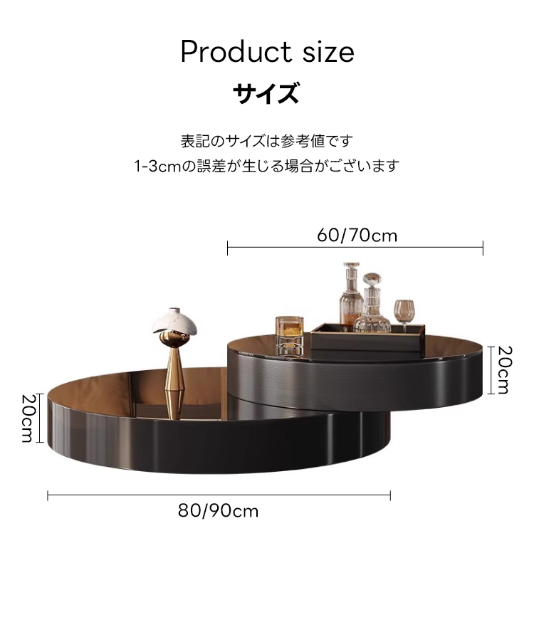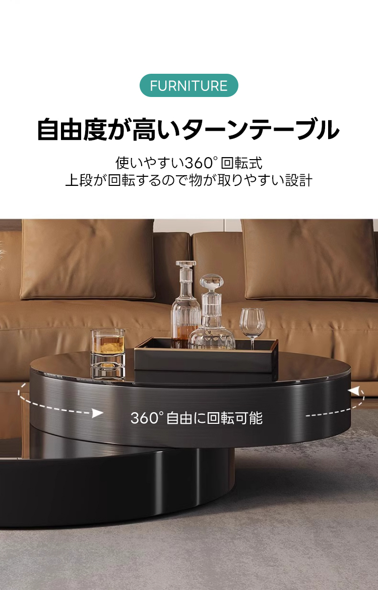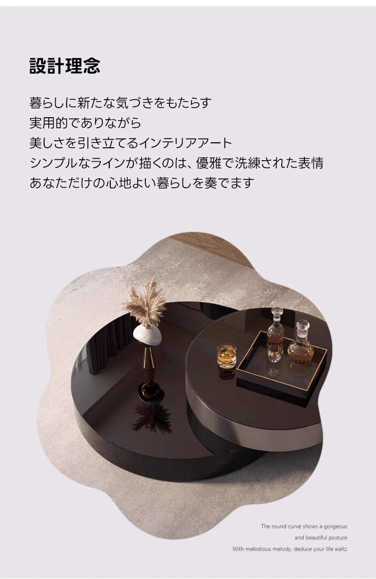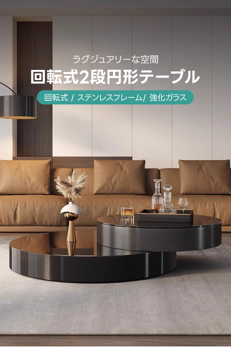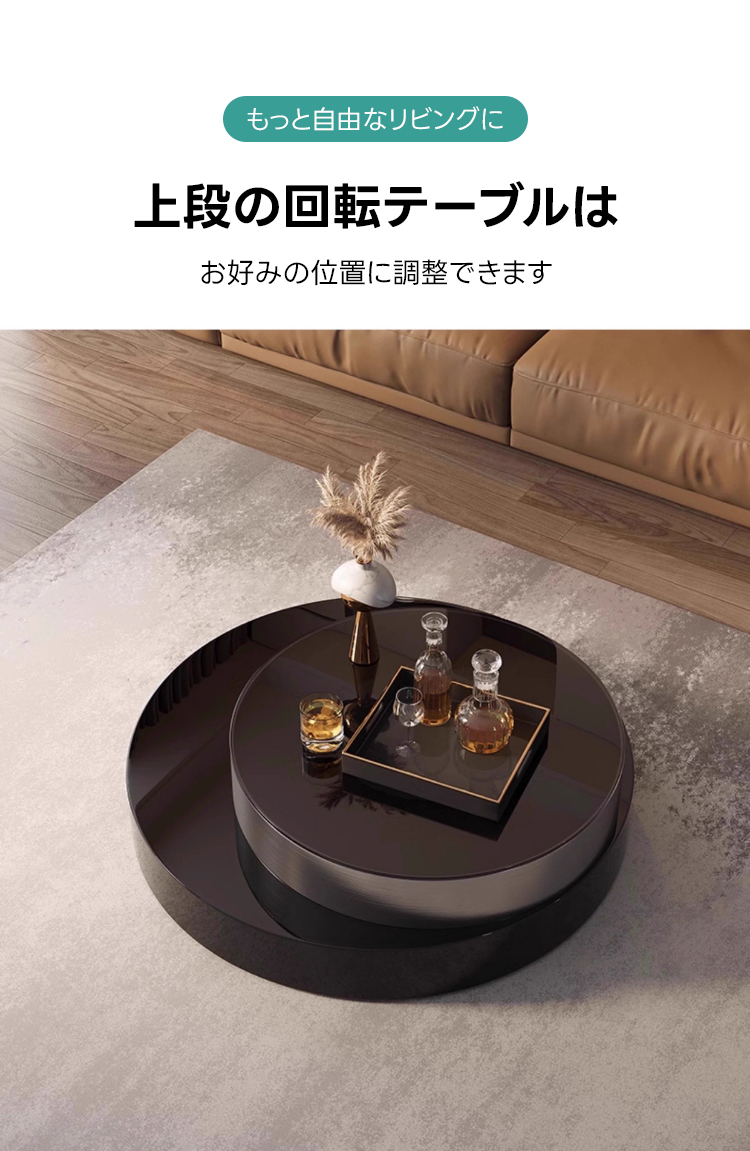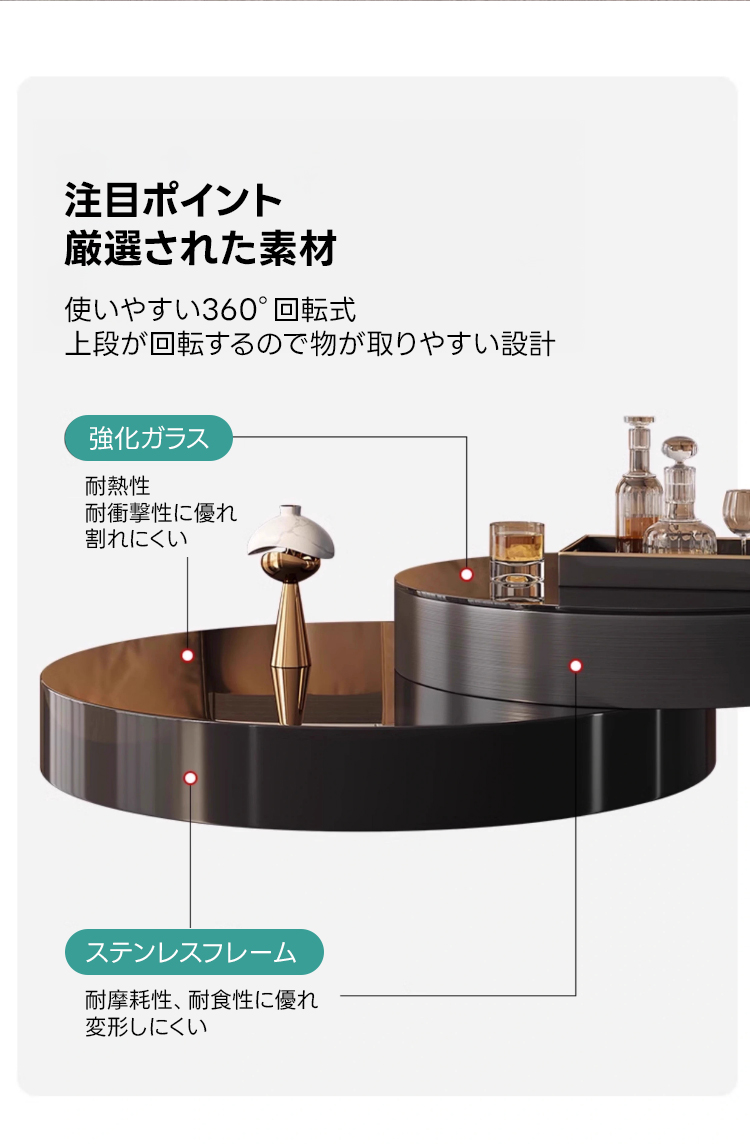 - 【回転式デザインと利便性】この回転式2段円形テーブルは、上段が360度自由に回転可能で、物の取り出しが簡単です。リビングのスペースに合わせて調整できるため、使い勝手が非常に良いです。日常生活をより快適にするための機能的なデザインです。