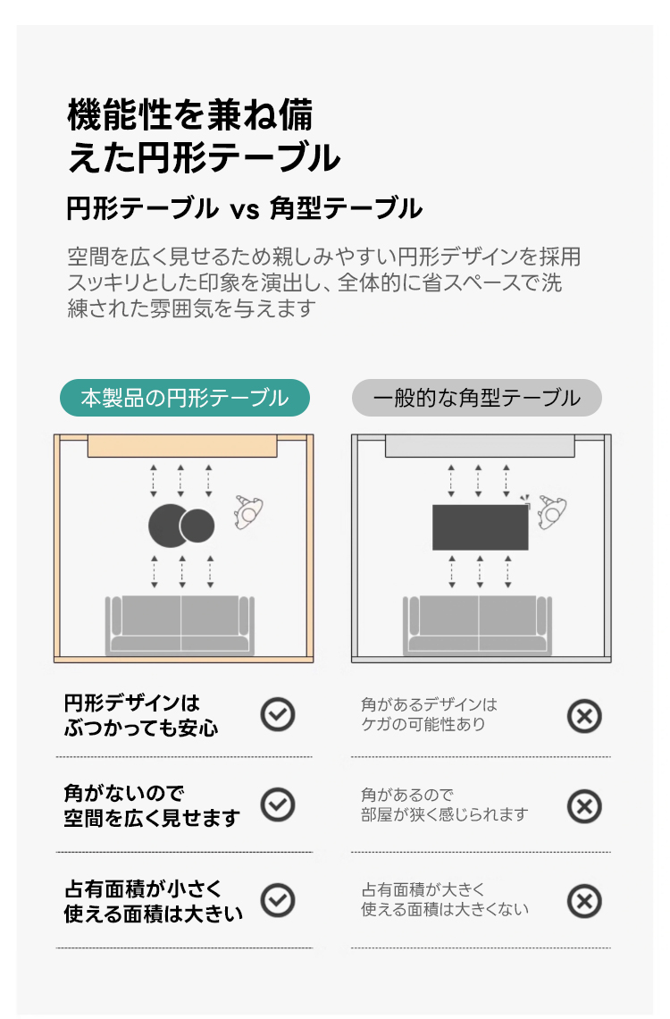 - 【安全性と安心感】丸みを帯びたエッジデザインにより、安全性が考慮されています。角がないため、ぶつかっても安心です。お子様がいる家庭でも安心してお使いいただけます。