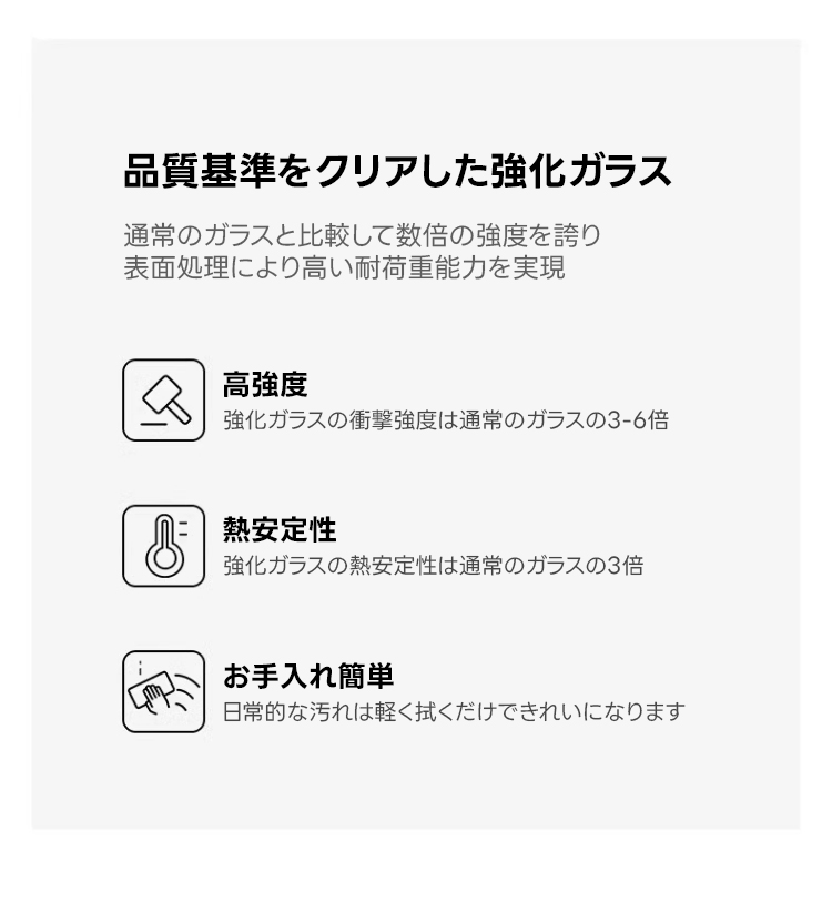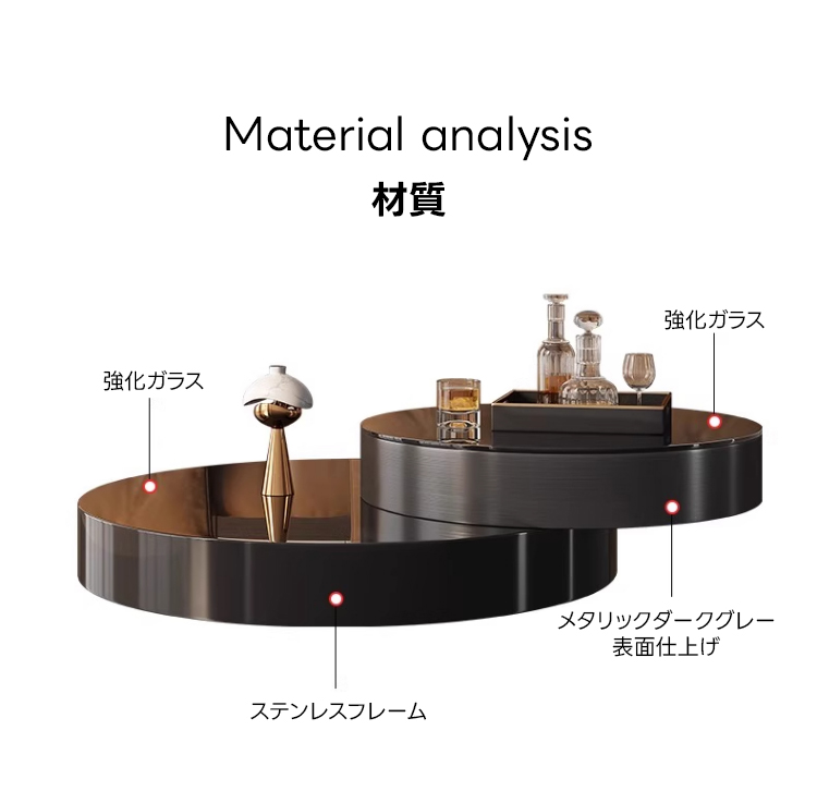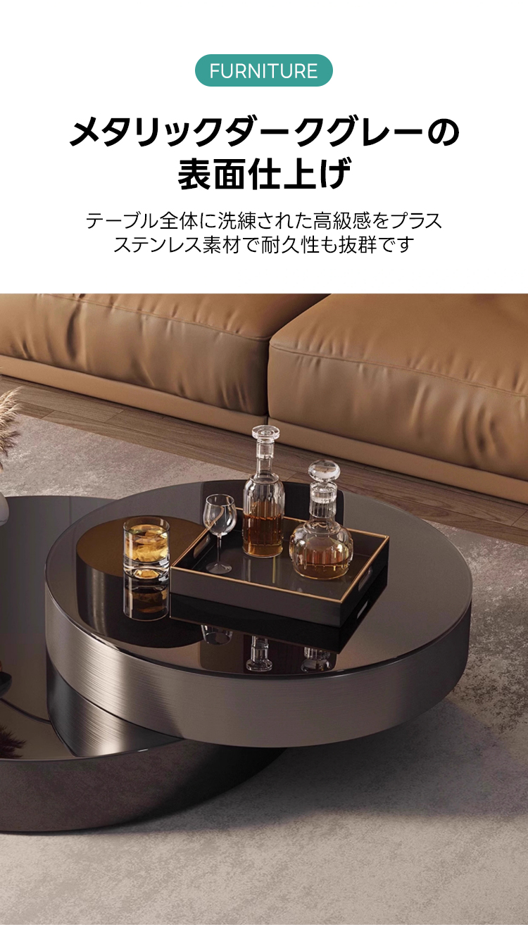 - 【高品質素材とデザイン】テーブルは強化ガラスとステンレスフレームで作られており、耐久性と安定性に優れています。メタリックダークグレーの仕上げが洗練された高級感を演出し、どんなインテリアにも自然に溶け込みます。