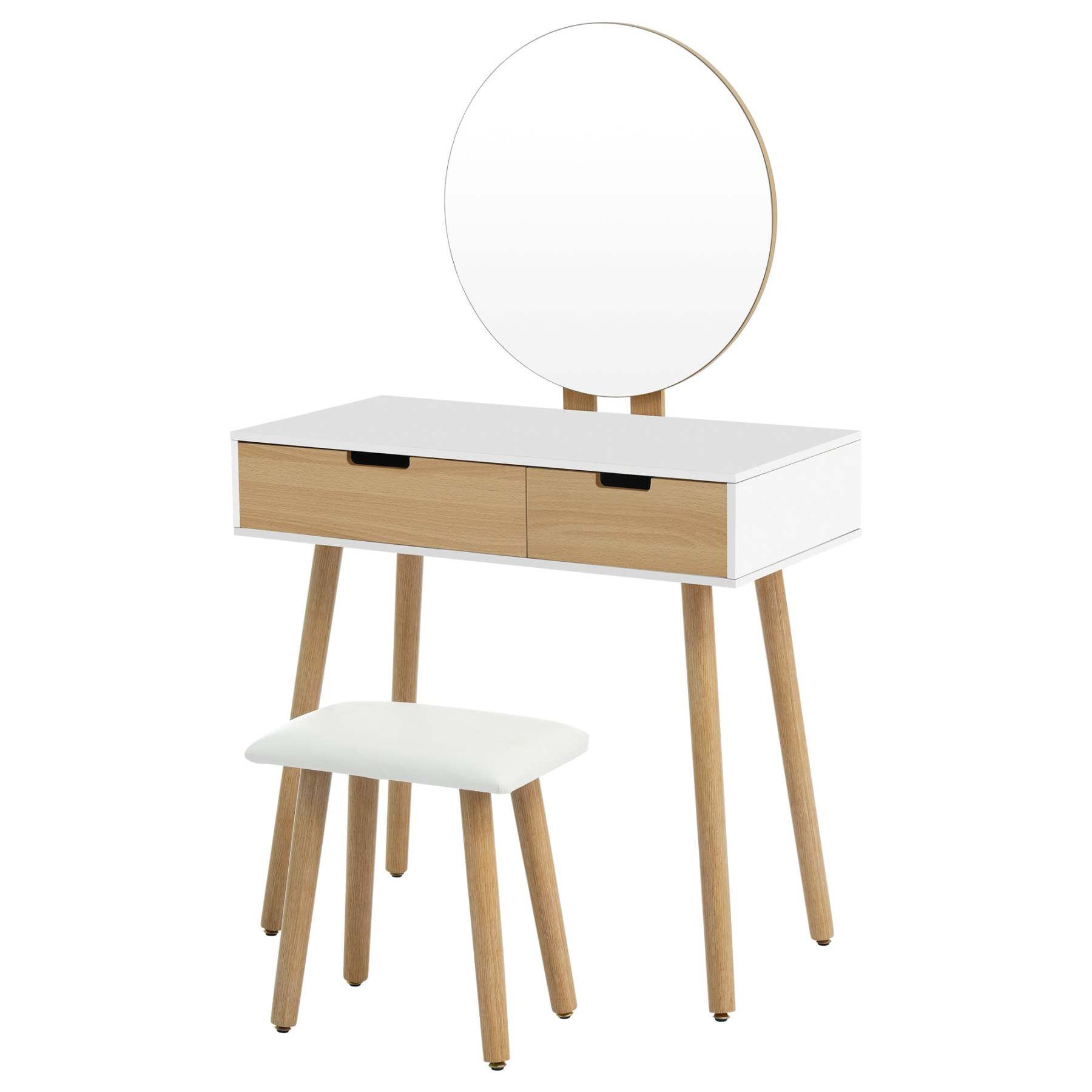- 【収納力抜群で整理整頓】サイズの異なる2つの引き出しを備え、メイク道具や小物を整理整頓できます。引き出しには落下防止のストッパーが付いており、安心して使用可能です。限られたスペースを有効活用できます。