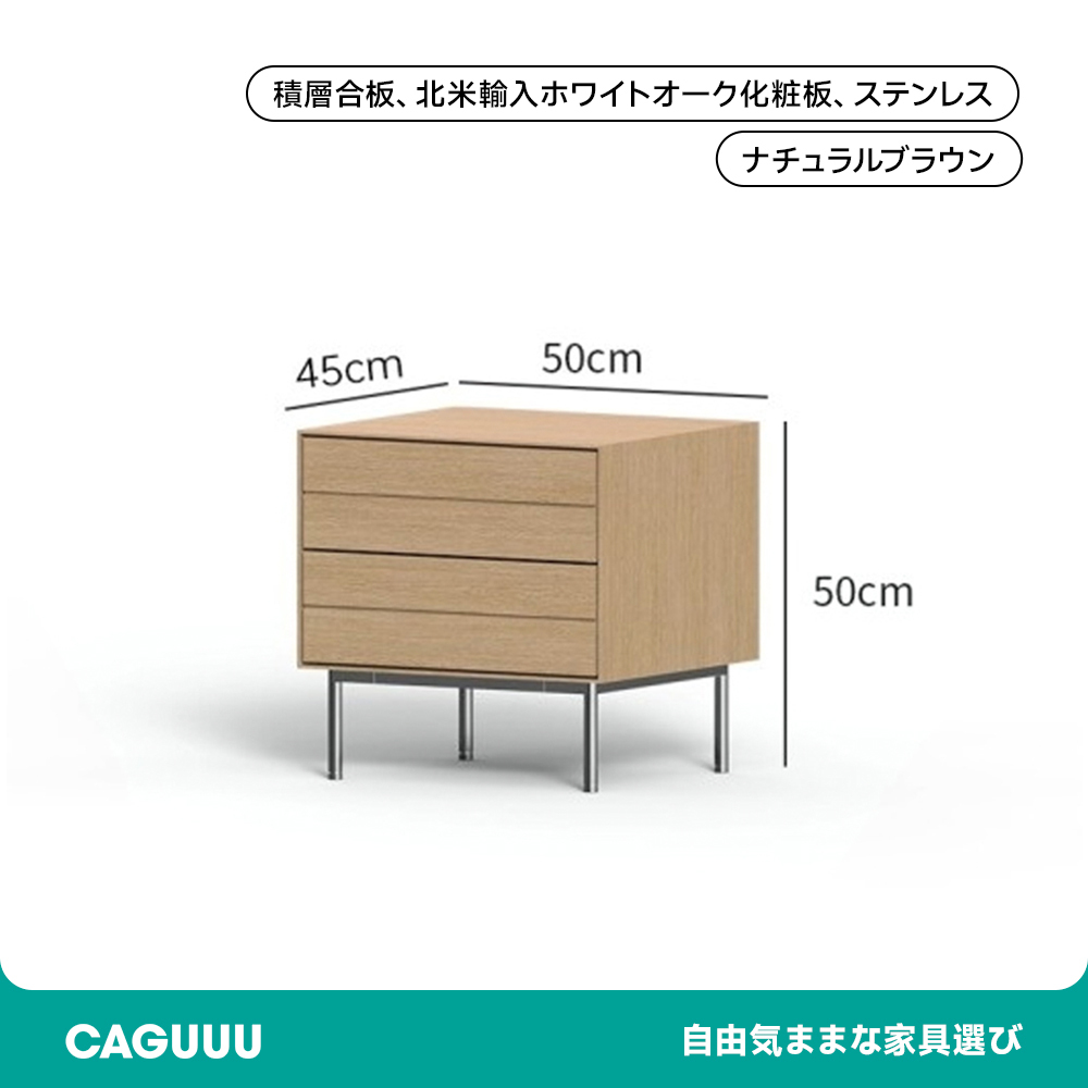 - 【収納力抜群のナイトテーブル】:2つの引き出しを備えたこのナイトテーブルは、ベッドサイドでの小物収納に最適です。見せたくないものをすっきりと収納できるので、整理整頓が簡単になります。