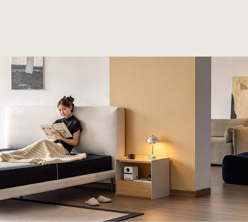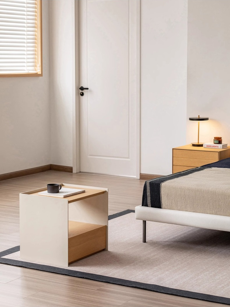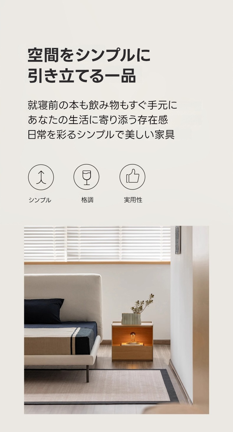 - 【シンプルモダンなデザイン】:ミニマルで洗練された3mmの薄縁仕様が、軽やかなラインを生み出し、モダンな印象を与えます。ナチュラルなベージュカラーと木材の質感が、どんな寝室にも自然に溶け込みます。