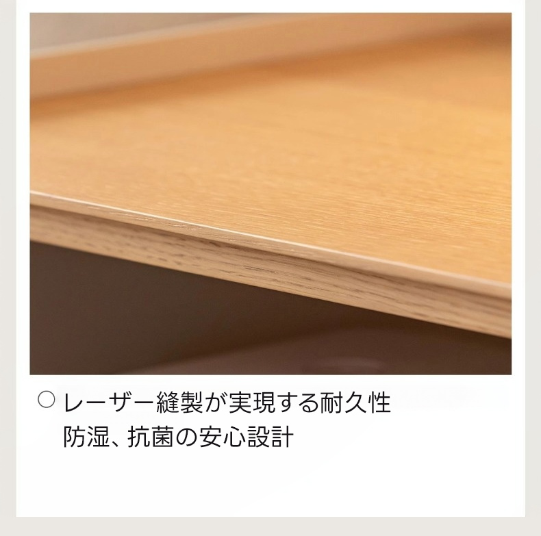 - 【高品質な材質と耐久性】:多層合板と北米産ホワイトオーク化粧板を使用し、耐久性と防湿性に優れています。カーボンスチールの補助素材が、しっかりとした構造を支えます。