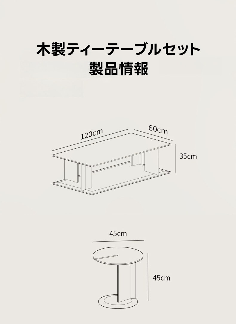 - 【多用途デザイン】この木製ティーテーブルセットは、スクエアテーブルとラウンドテーブルの組み合わせで、リビングや寝室など様々な空間に適しています。自由自在に配置できるため、どんなインテリアにもマッチします。