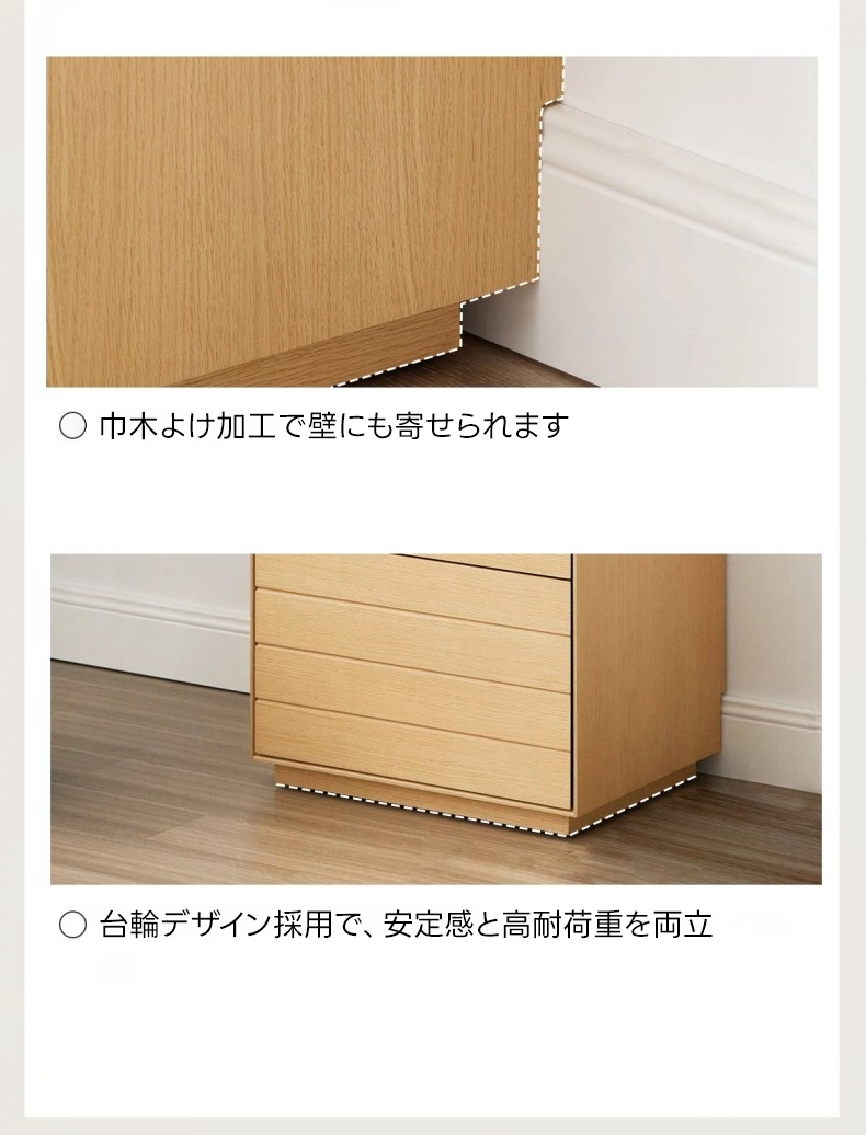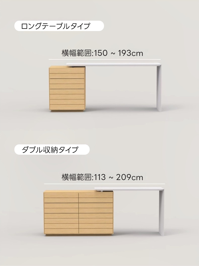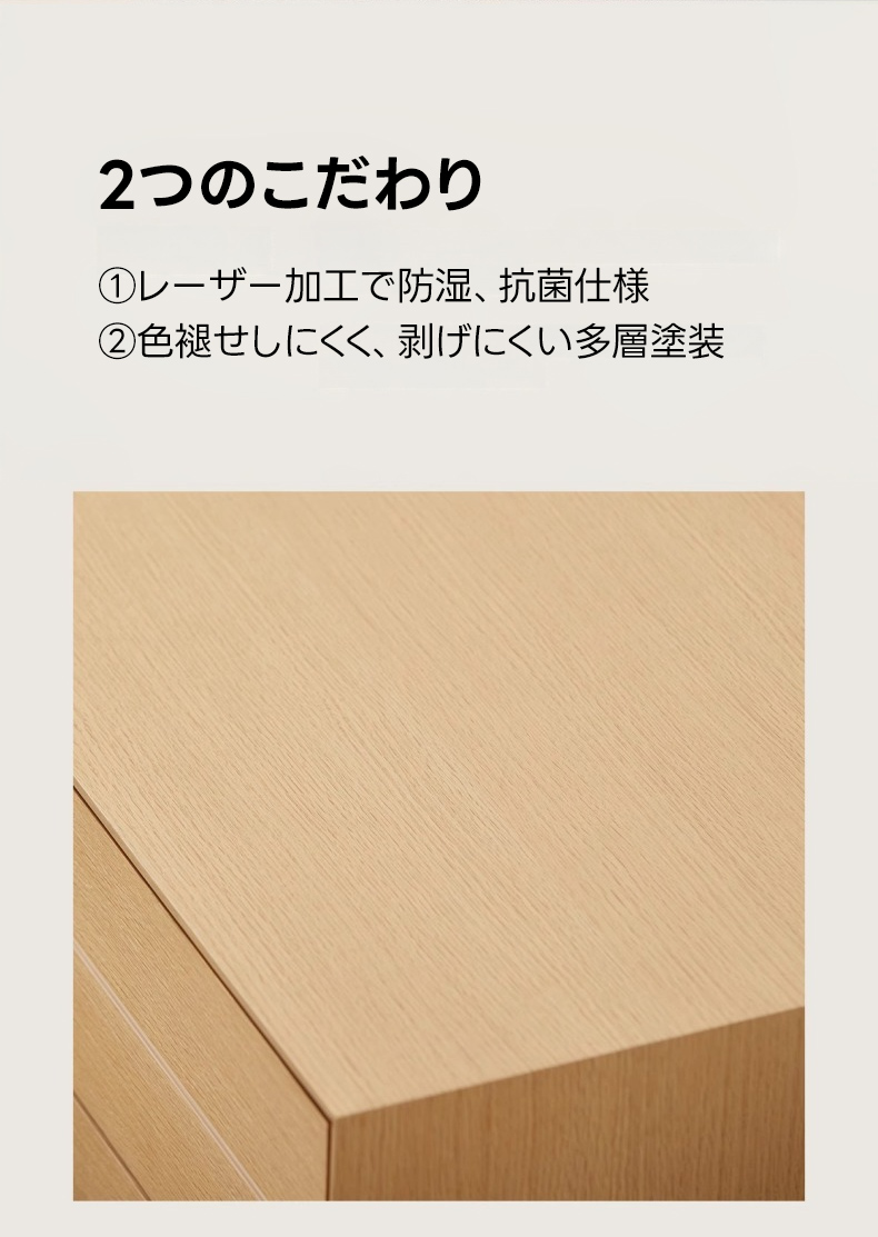 - 【高品質素材と優れたデザイン】北米産ホワイトオーク化粧板を使用し、耐久性と美しさを兼ね備えています。防湿・抗菌仕様により、長く安心してお使いいただけます。選べるロングテーブルタイプとダブル収納タイプで、幅広いニーズに対応します。