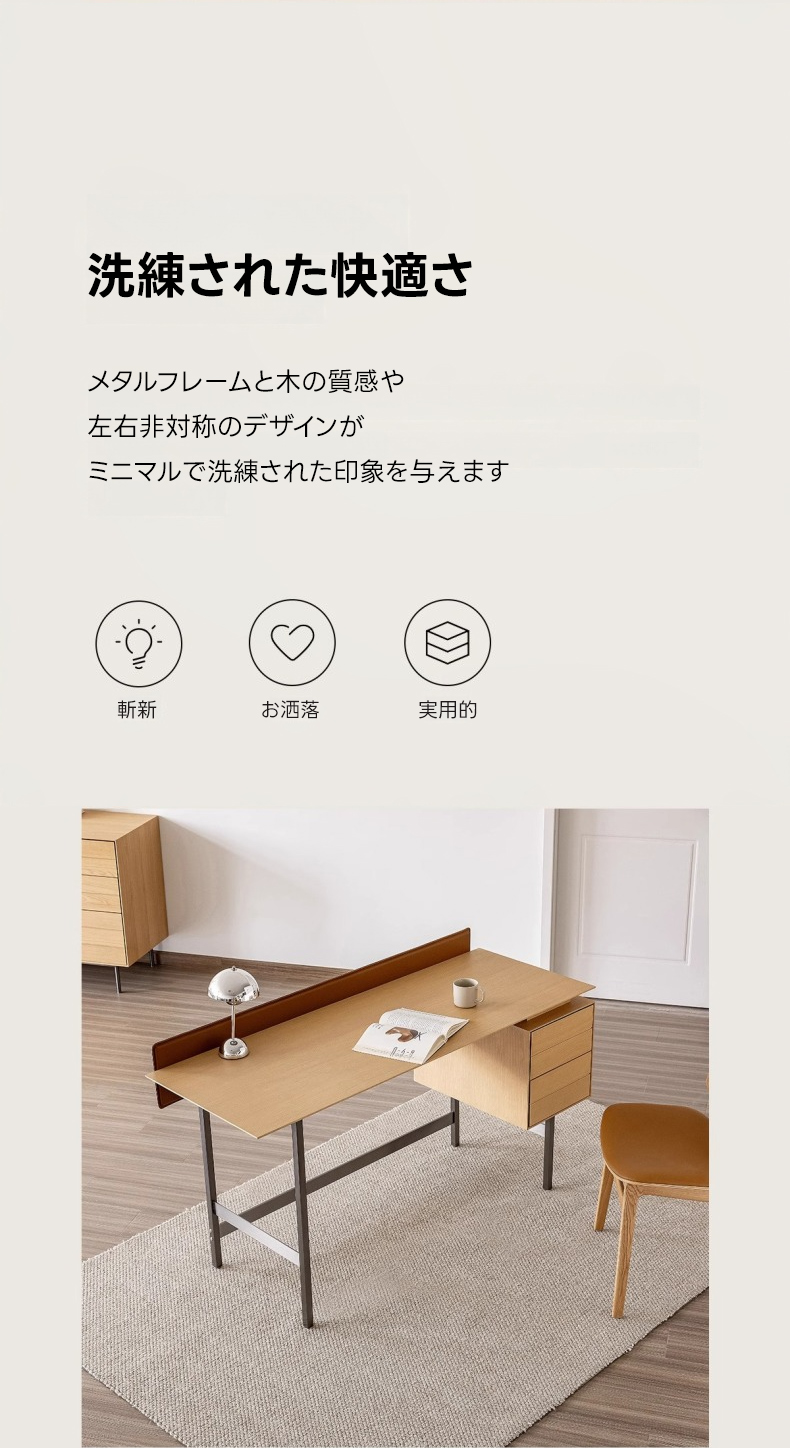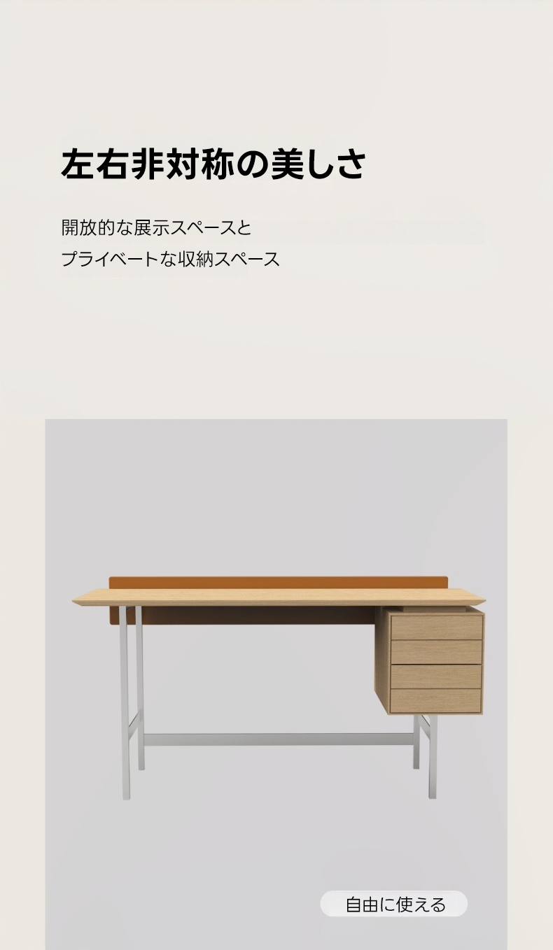 - 【快適な使用感】広々としたデスクトップは、快適な使い心地を提供します。デザインは左右非対称で、開放的な展示スペースとプライベートな収納スペースを兼ね備えています。