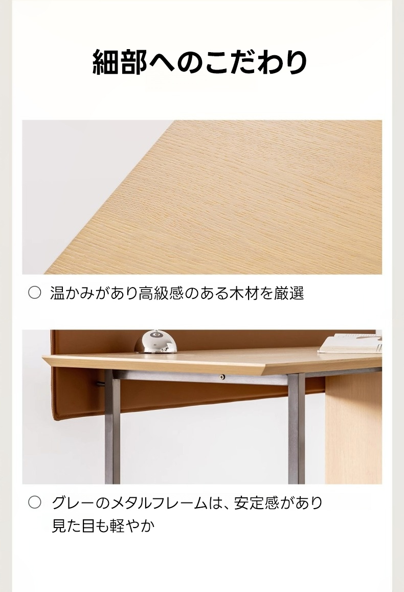 - 【高品質な素材と洗練されたデザイン】北米産ホワイトオーク化粧板と積層合板を使用し、温かみのある高級感を演出。メタルフレームとの調和が美しく、洗練された印象を与えます。