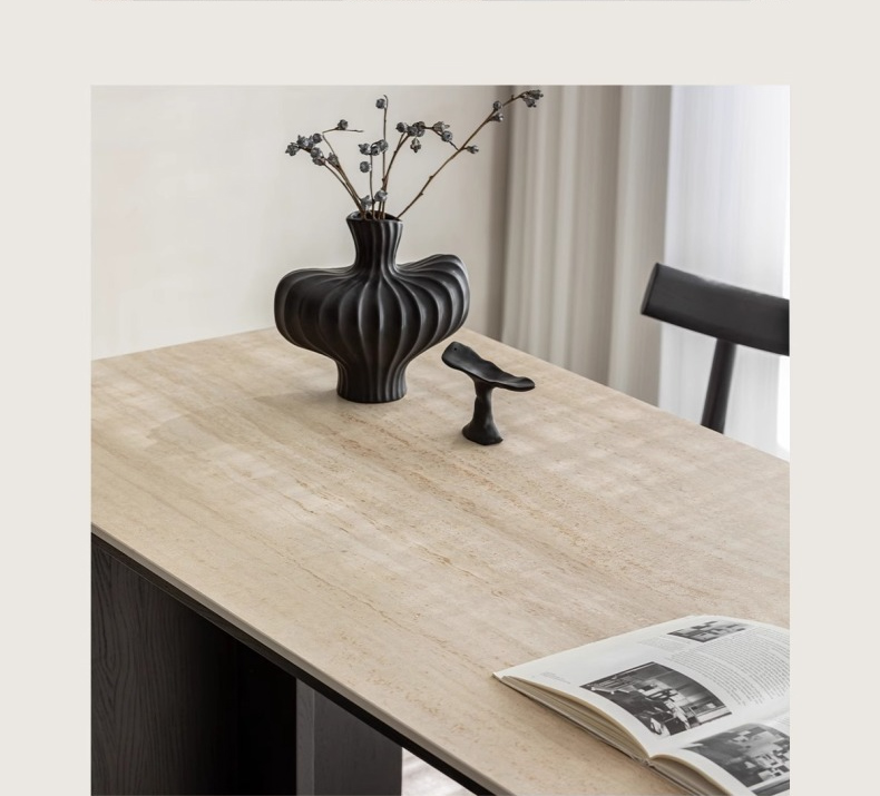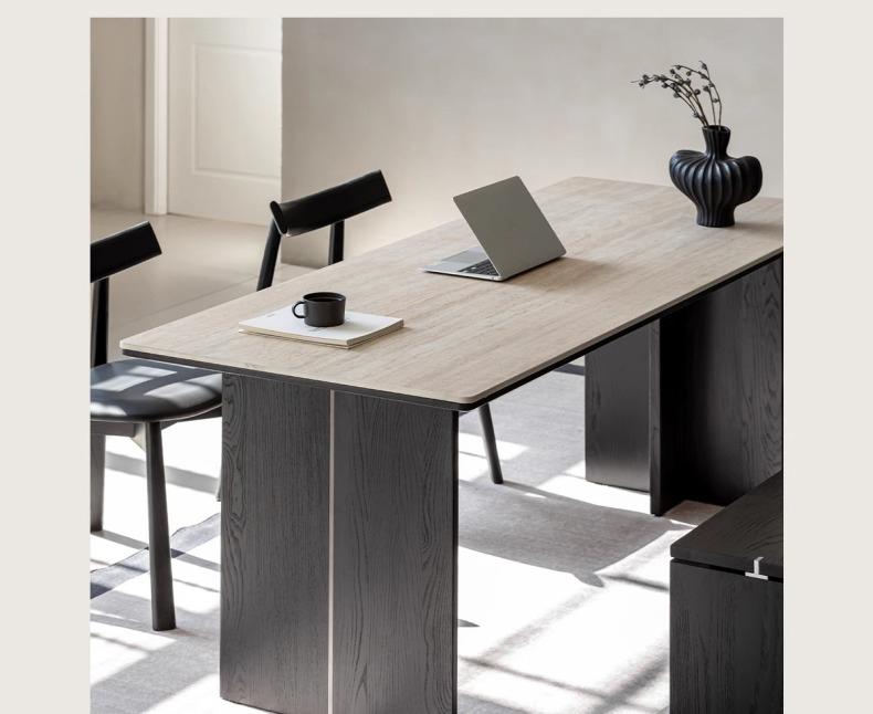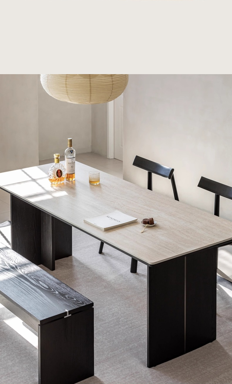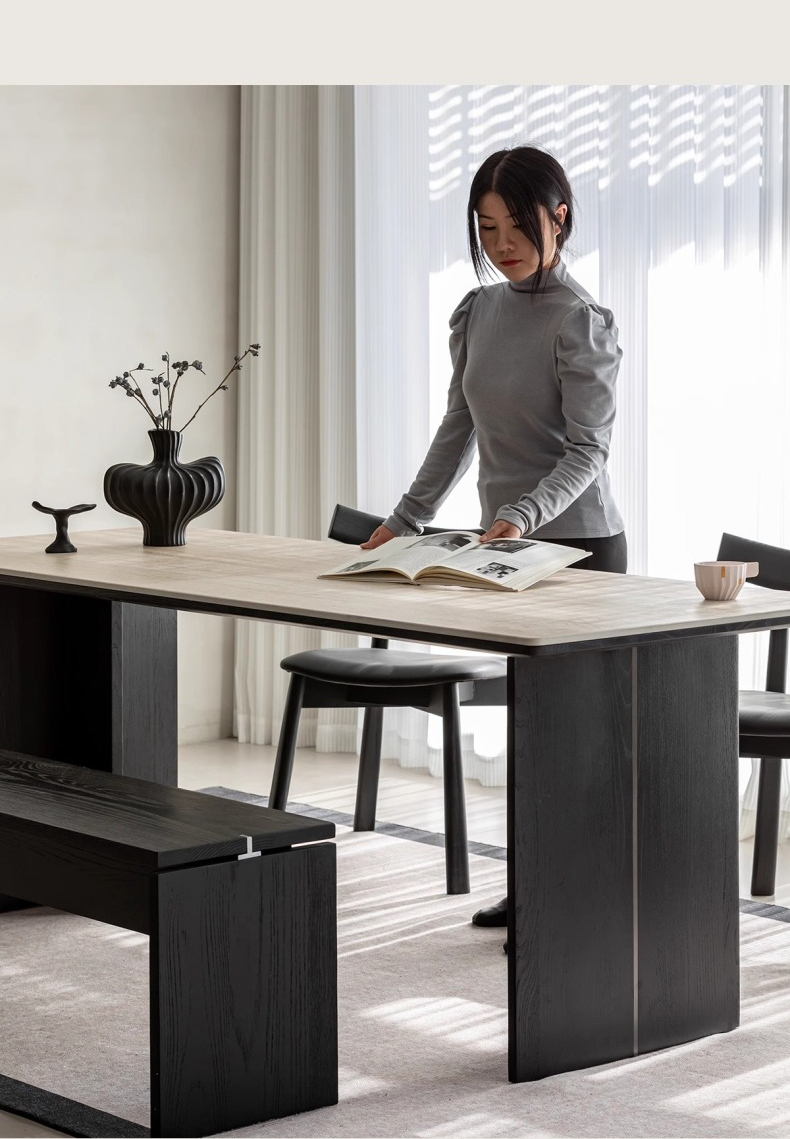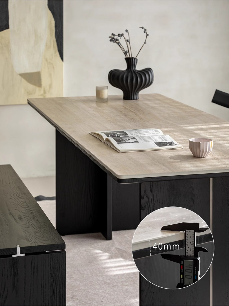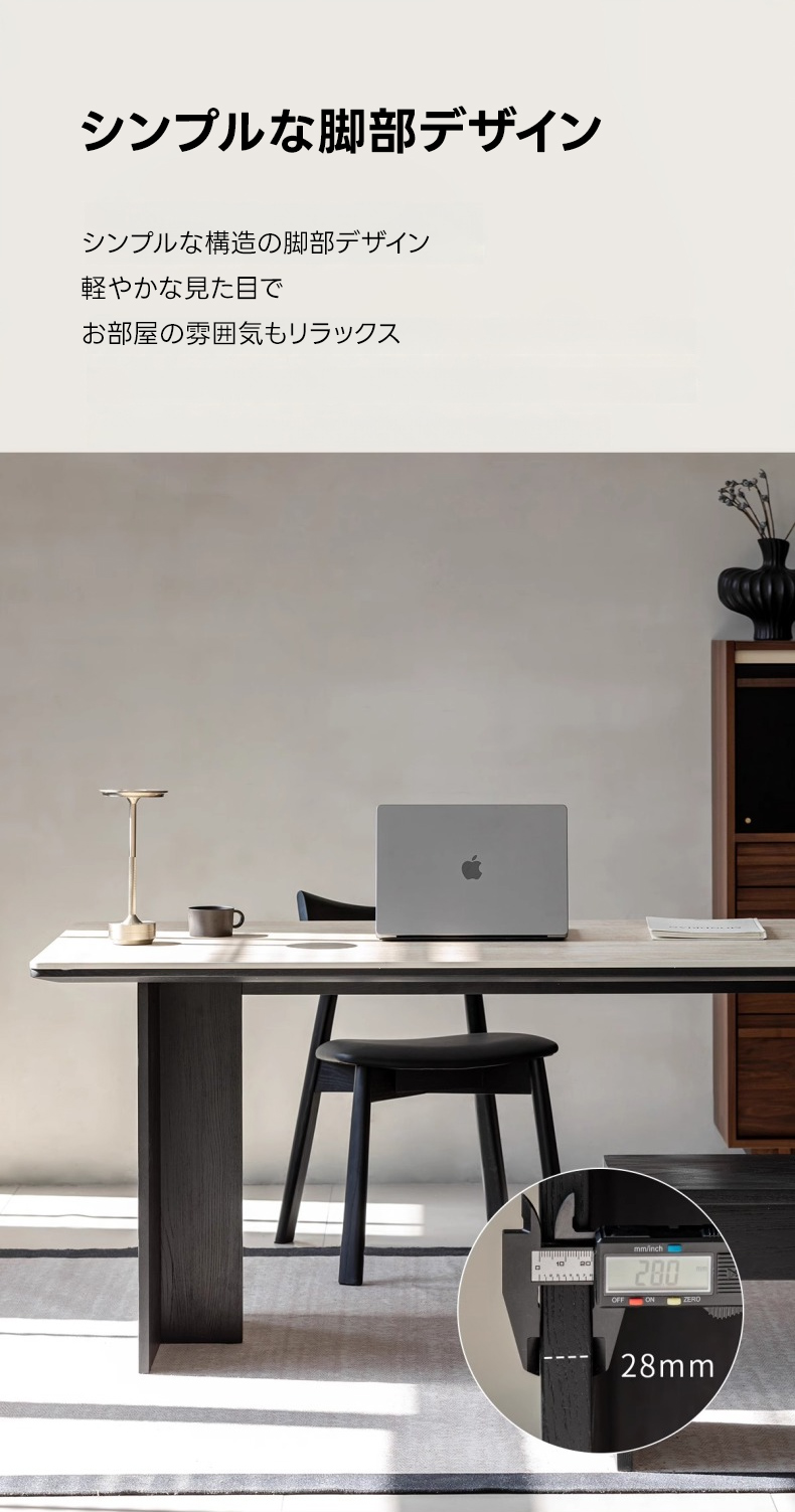 - 【洗練されたデザイン】:ジャパンディスタイルを取り入れたこのテーブルは、ブラックの木製フレームとセラミックの天板が調和し、空間に軽やかさをもたらします。T字型の脚部デザインは、見た目の美しさと機能性を両立しています。