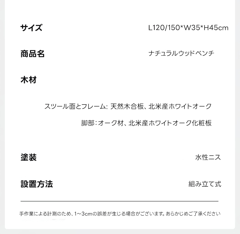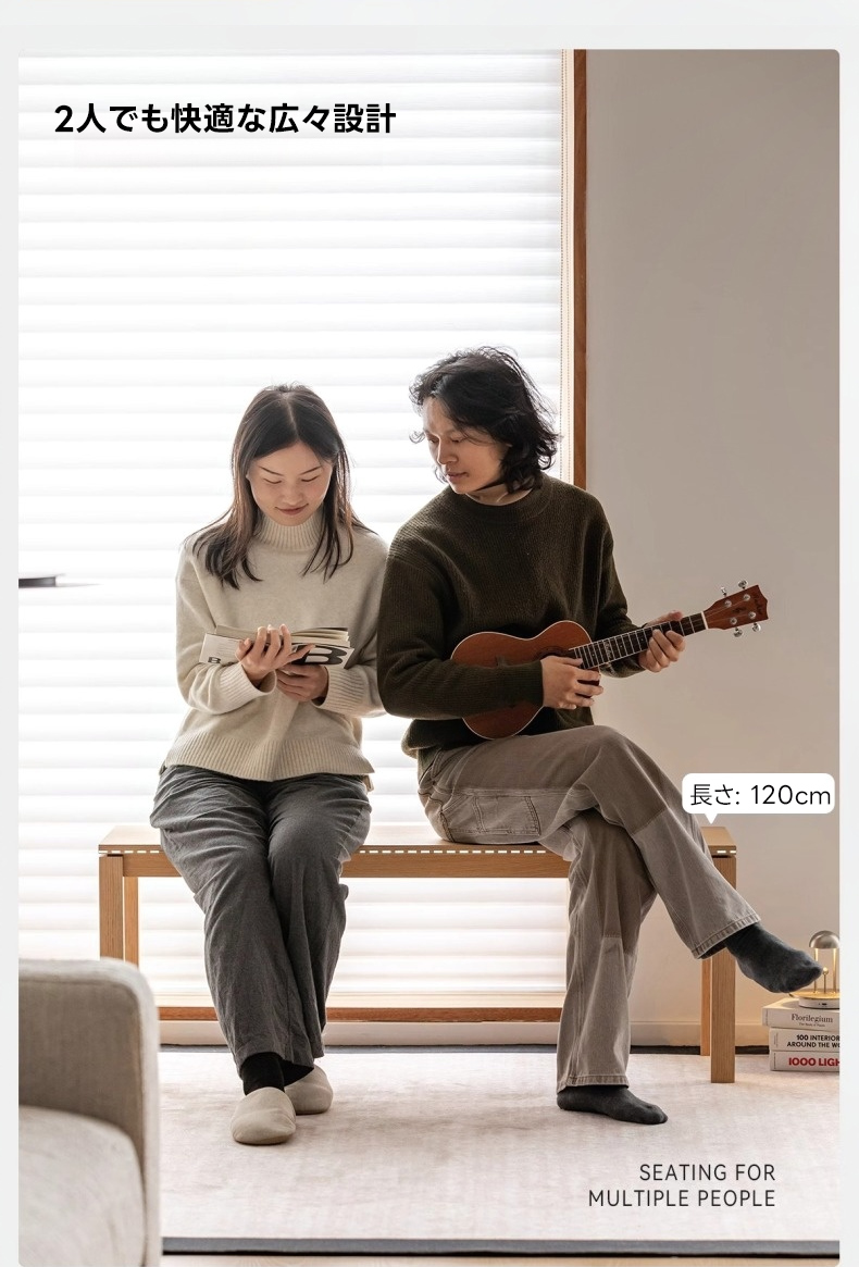 - 【幅広い適用シーン】:カップルやファミリー、一人暮らしの方に最適なこのベンチは、ダイニングチェアとしてもリビングの一部としても使用可能です。幅120cmと150cmの2サイズ展開で、さまざまなスペースにフィットします。
