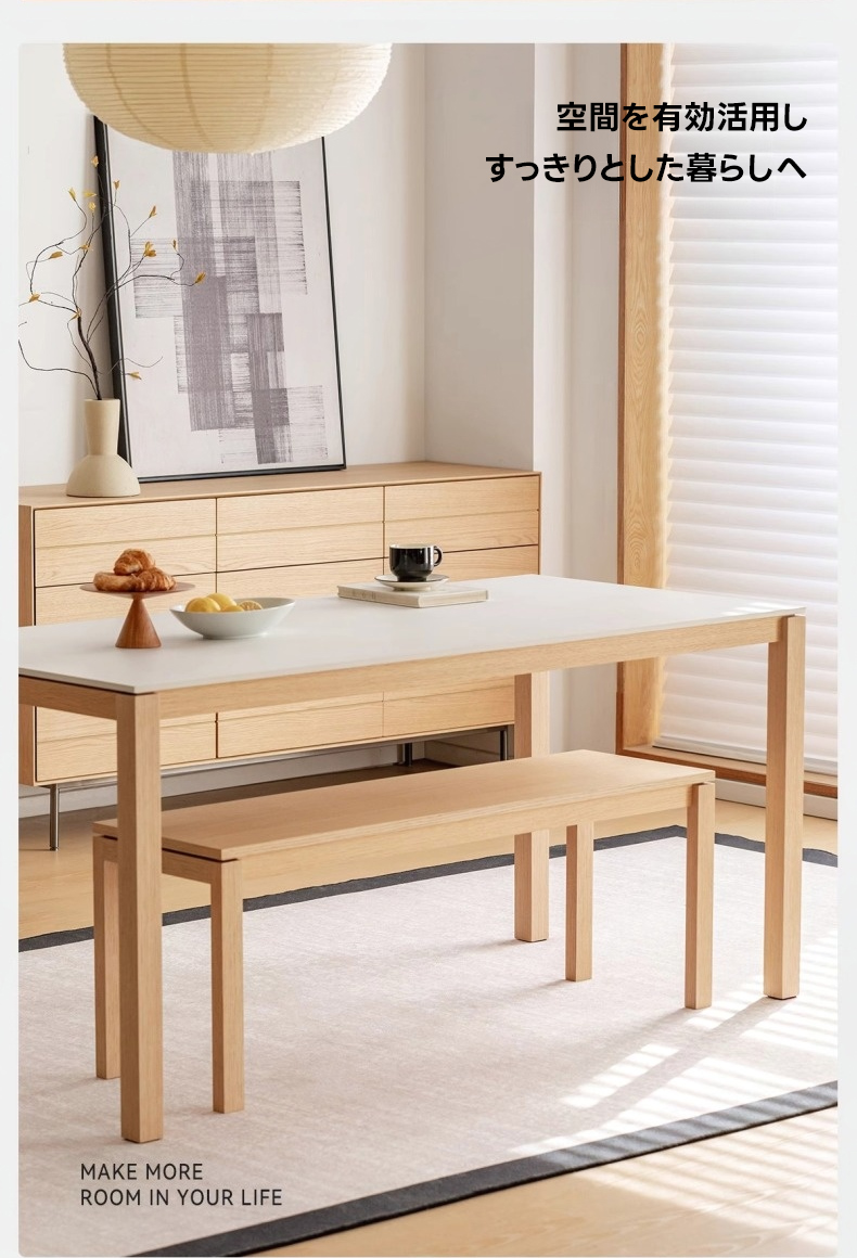 - 【高品質な素材とデザイン】:天然木合板と北米産ホワイトオークを使用し、耐久性と安定感を実現。脚部にはオーク材を採用し、上質な木目と温かみが感じられるデザインです。細部までこだわった美しいエッジが高級感を演出します。