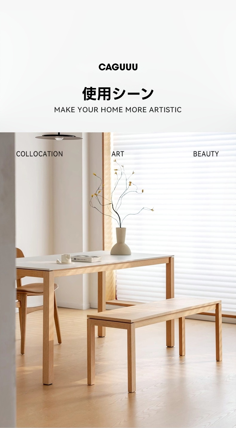 - 【多用途のナチュラルウッドベンチ】:このベンチは、ダイニングやリビング、さらにはベッドルームのアクセントとしても活用できる多用途な家具です。シンプルモダンなデザインがどんなインテリアにも自然に溶け込み、空間をより豊かに演出します。