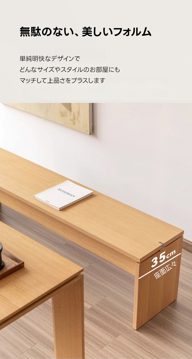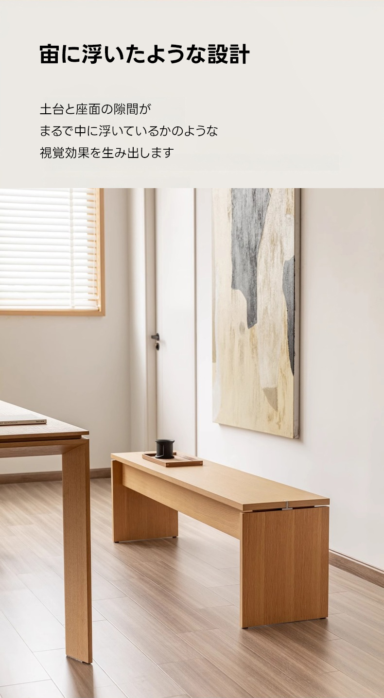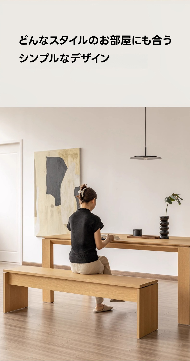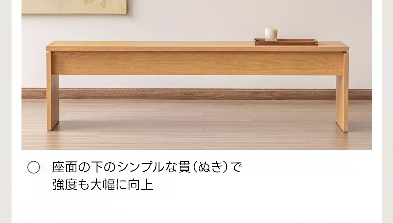 - 【シンプルモダンなデザイン】このベンチは、どんなインテリアにも調和するシンプルモダンなデザインが特徴です。ナチュラルな木目が美しく、リビングやダイニングに高級感をプラスします。