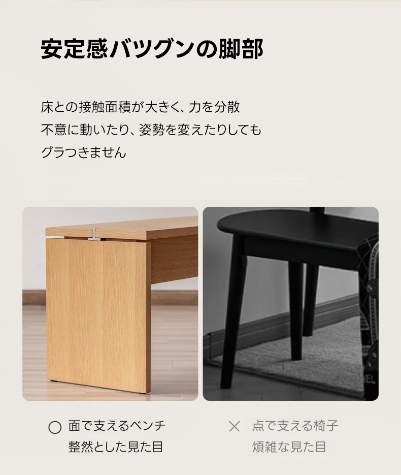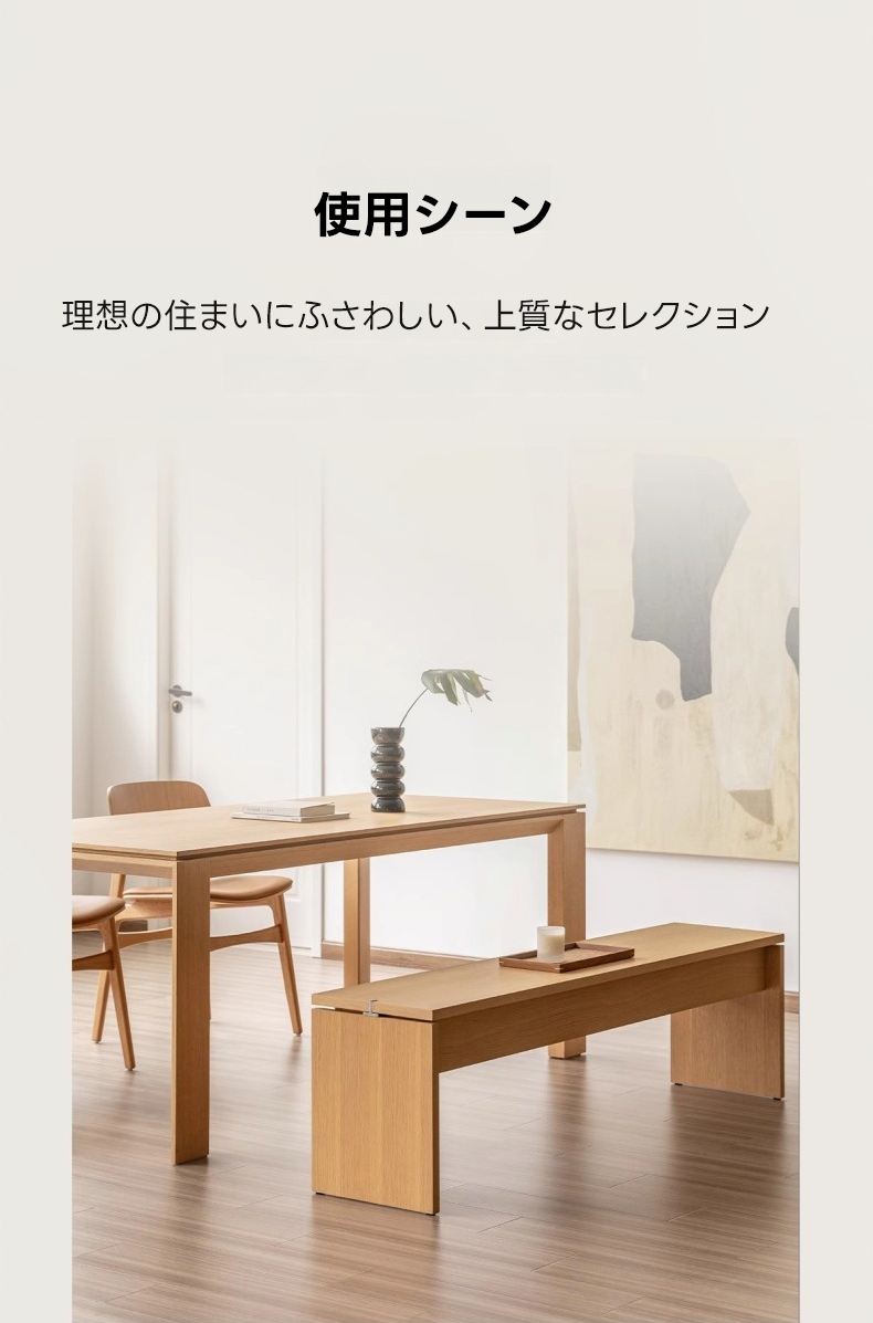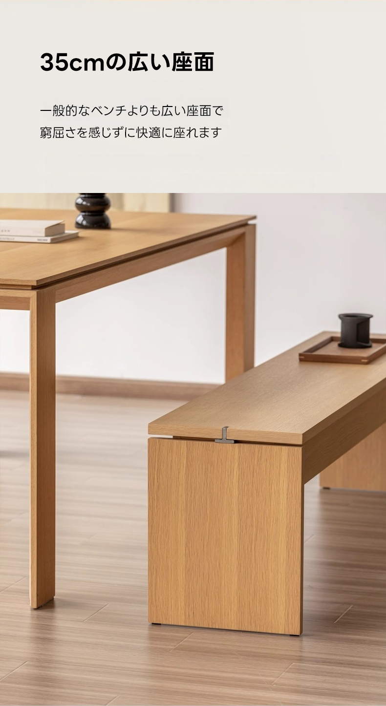 - 【シンプルモダンなデザイン】このベンチは、どんなインテリアにも調和するシンプルモダンなデザインが特徴です。ナチュラルな木目が美しく、リビングやダイニングに高級感をプラスします。