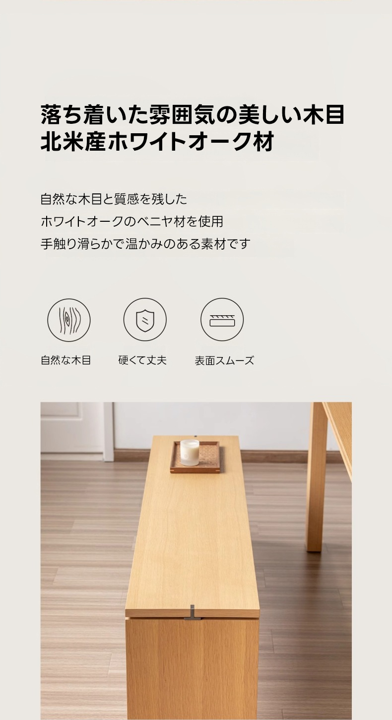 - 【高品質な素材と仕上げ】北米産ホワイトオーク材を使用し、自然な木目と質感が魅力です。レーザー加工による防湿・抗菌仕様で、色褪せしにくく、長期間美しい状態を保ちます。