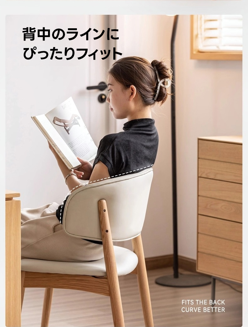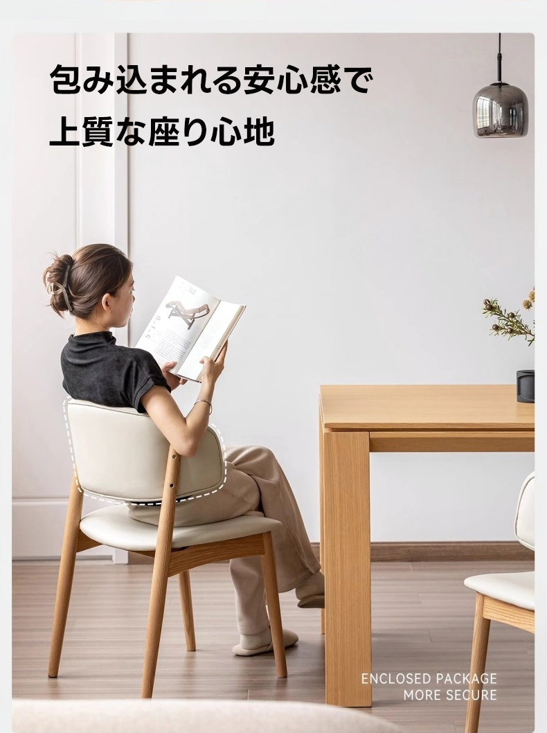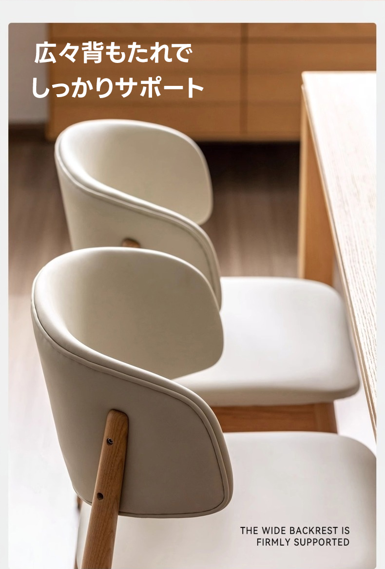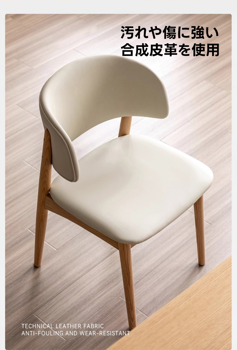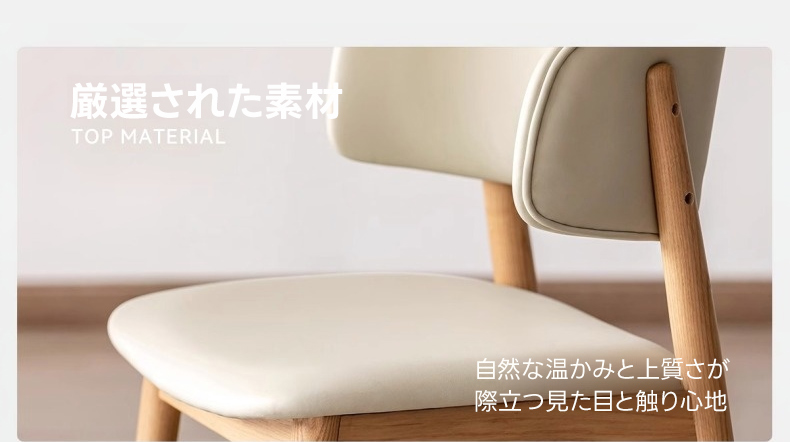 • 【高品質な素材とデザイン】北米産ホワイトオーク材を使用したフレームは、自然な温かみと美しい木目を持ち、合成皮革の座面と背もたれが高級感を演出します。