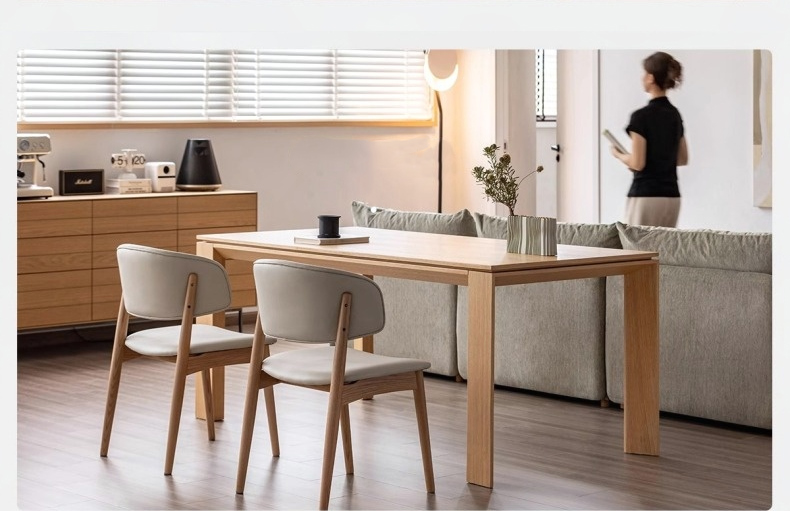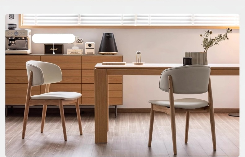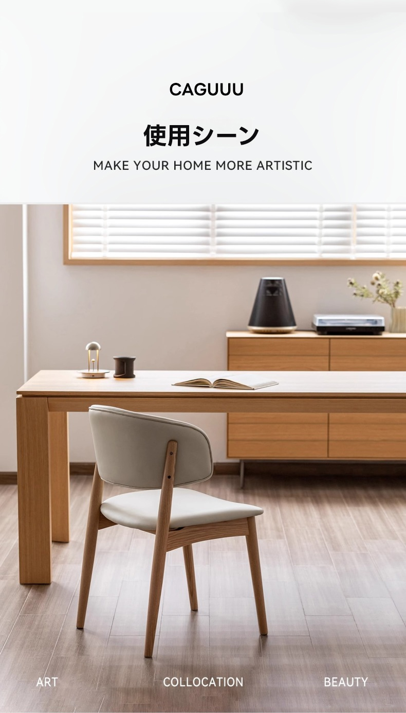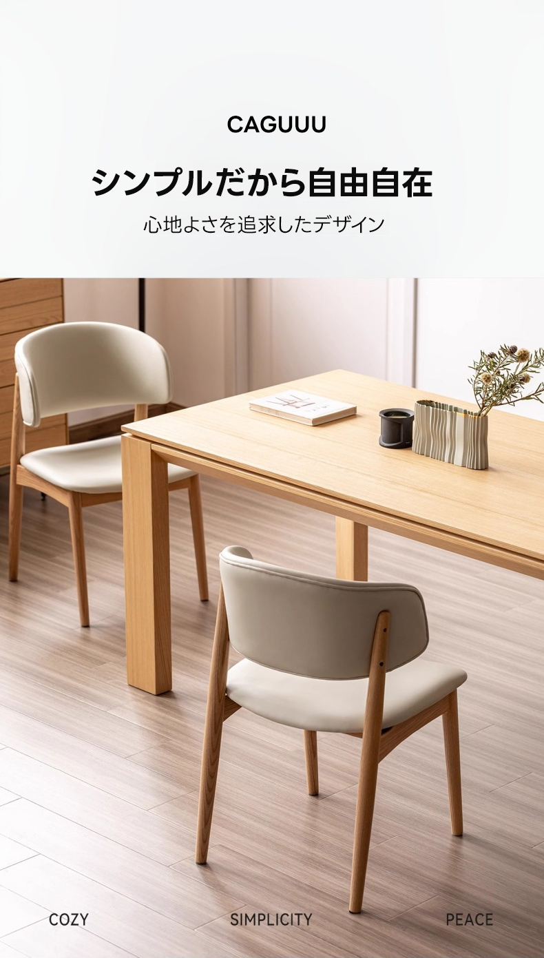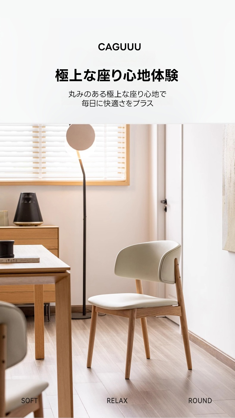 • 【高品質な素材とデザイン】北米産ホワイトオーク材を使用したフレームは、自然な温かみと美しい木目を持ち、合成皮革の座面と背もたれが高級感を演出します。