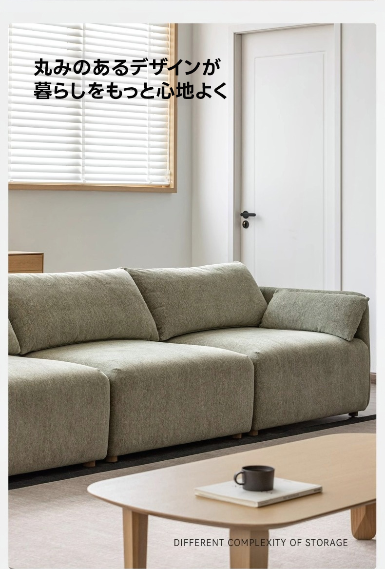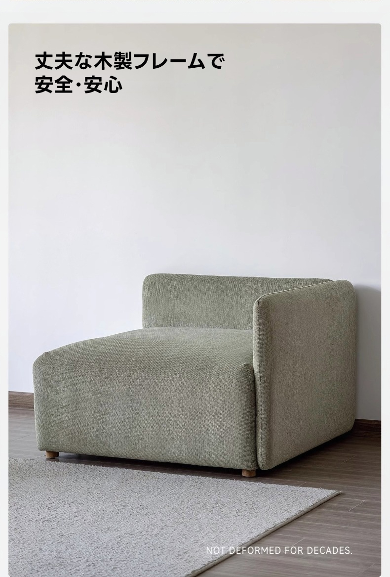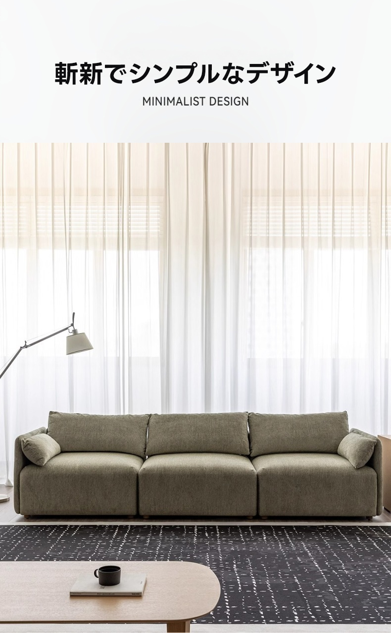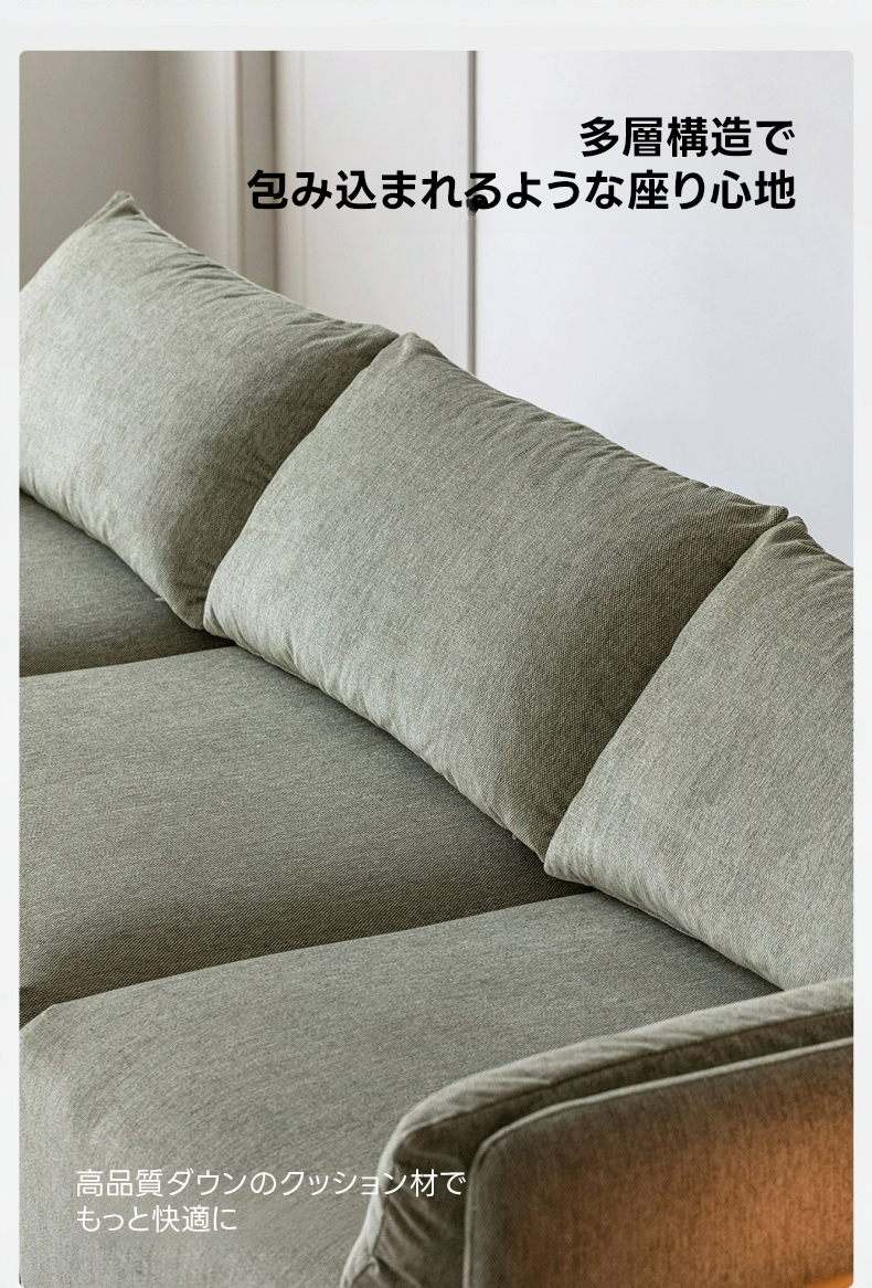 - 【高品質な素材とデザイン】オーク材とパイン材を使用した頑丈なフレームに、シェニール生地のカバーを採用。クッションにはグースダウンとPP綿を使用し、長時間座っても疲れにくい設計です。