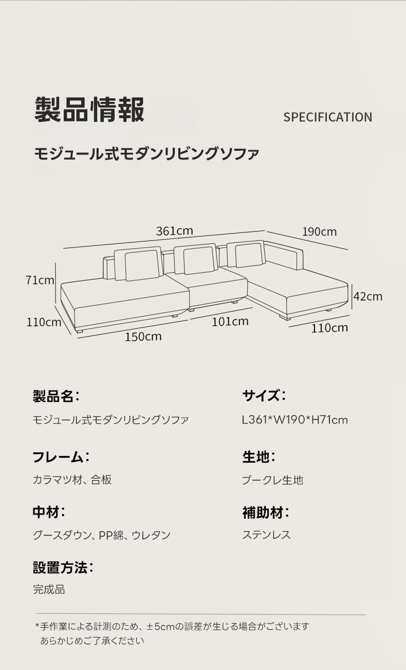 - 【自由にカスタマイズ可能なモジュール式デザイン】このモジュール式ソファは、リビングのスペースやスタイルに合わせて自由に組み合わせることができ、あなただけのスタイルを作り上げることが可能です。シンプルモダンなデザインで、どんなインテリアにも調和します。