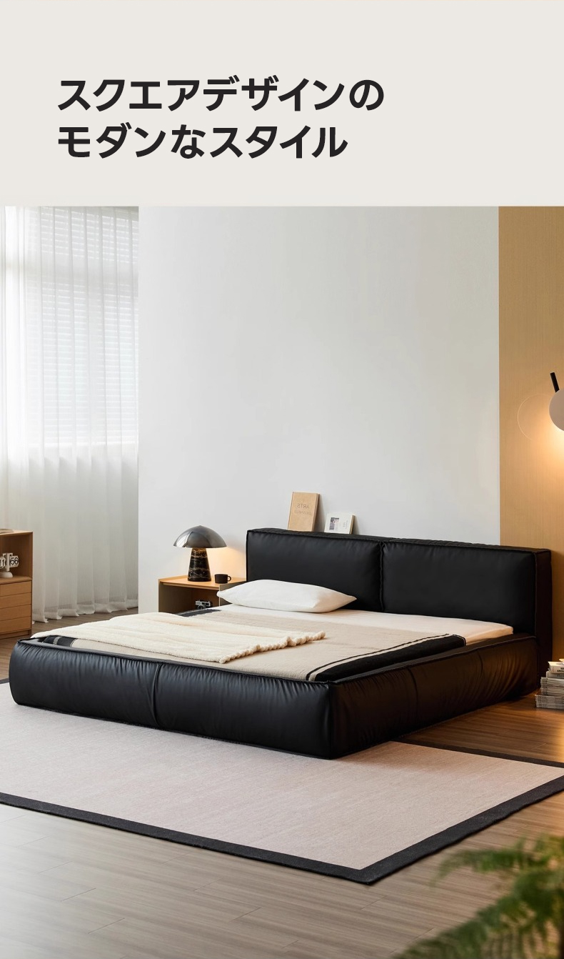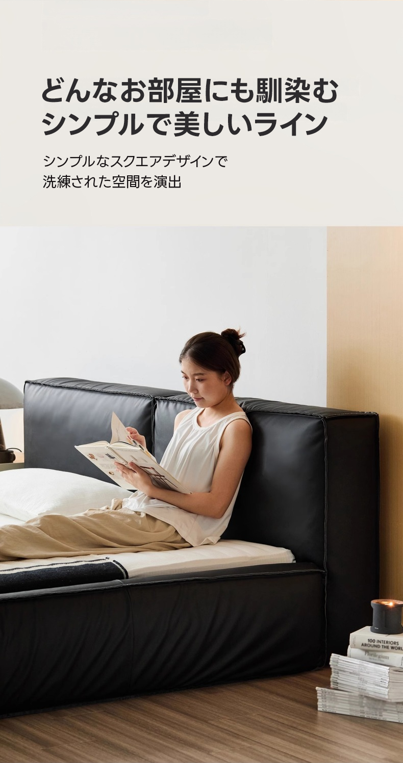 - 【ラグジュアリーなデザインと機能性】Woody Selectレザー調ファブリックベッドは、イタリアンモダンなデザインが特徴で、お部屋に高級感をプラスします。スクエアデザインと美しい縫製が、どんなインテリアにもマッチし、上質な空間を演出します。